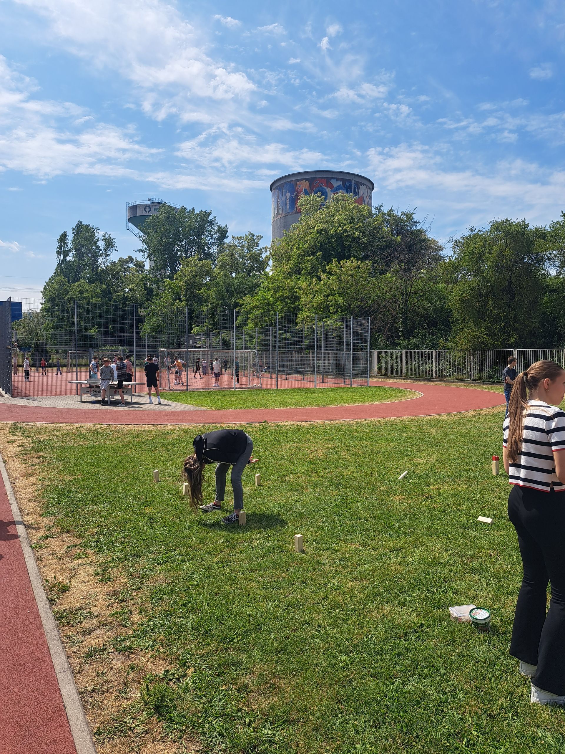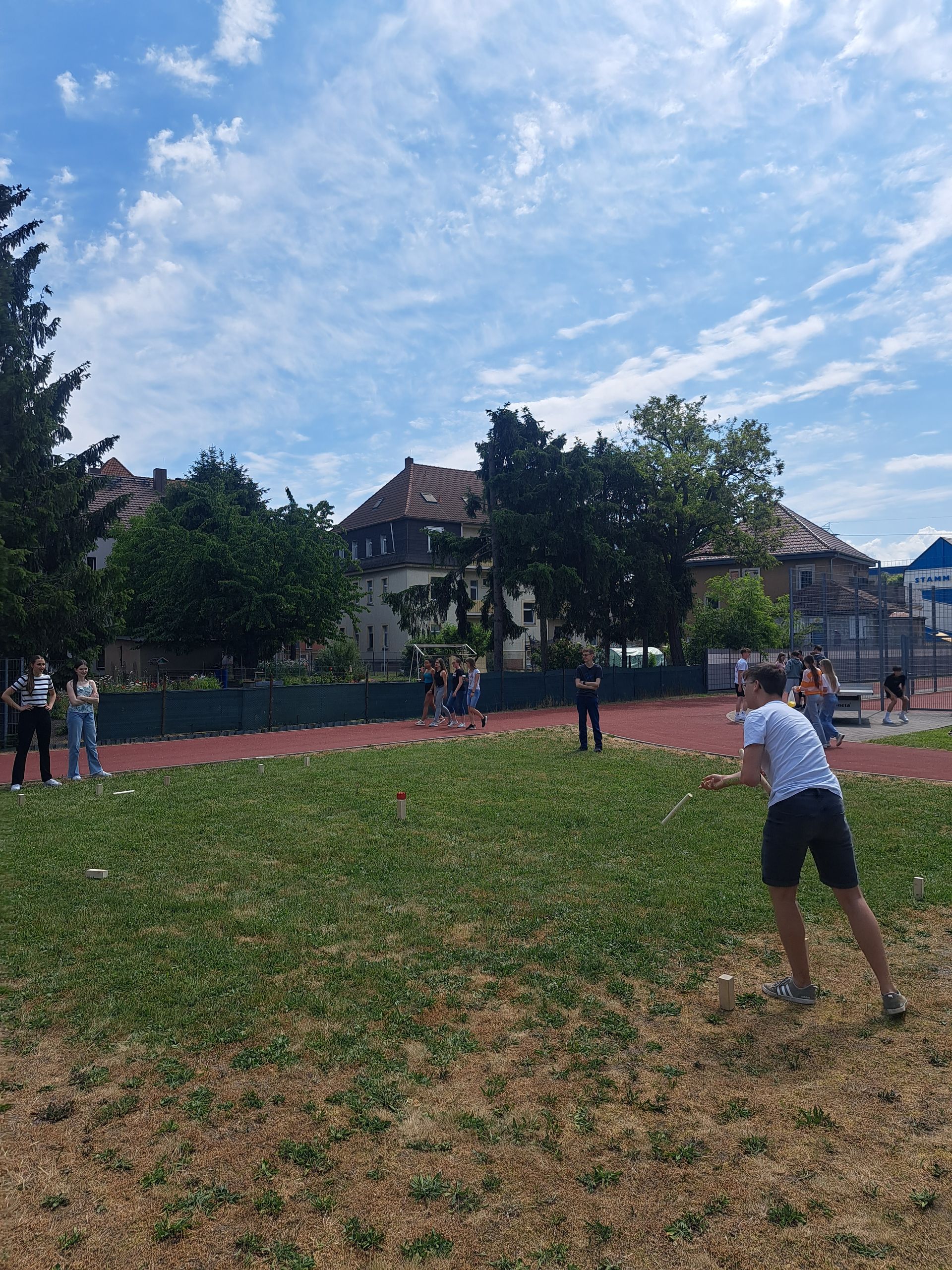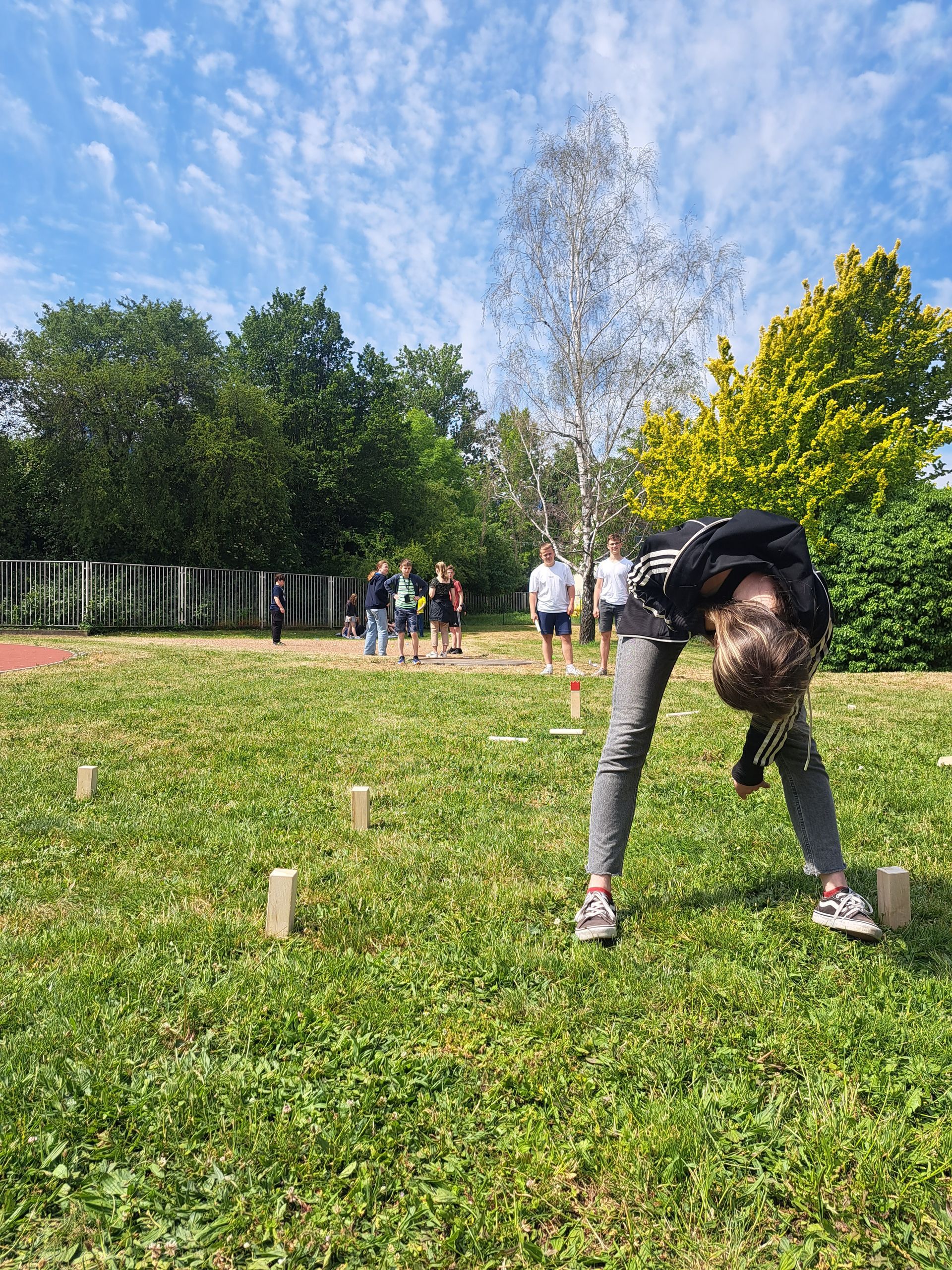 Zum einjährigen Jubiläum der Aktiven (Mittags-)Pause wurden am WHG einige neue Anschaffungen vorgenommen, um das Jubiläum angemessen zu feiern. Neben den altbekannten Angeboten wie Fußball, Basketball, Volleyball und Tischtennis besteht nun auch die Möglichkeit, seine Geschicklichkeit bei einer Runde Boccia(/Boule) oder Kubb(/Wikinger Schach) unter Beweis zu stellen. Darüber hinaus gibt es nun drei Roundnet-Sets sowie fünf Picknickdecken für diejenigen, die ihre Mittagspause mit einer entspannten Yoga-Runde verbringen möchten. Zusätzlich können aus dem Bestand des Fachbereichs Sport auch Speedbälle, Scoop-Ball-Sets und das Frisbee-Zielnetz ausgeliehen werden.