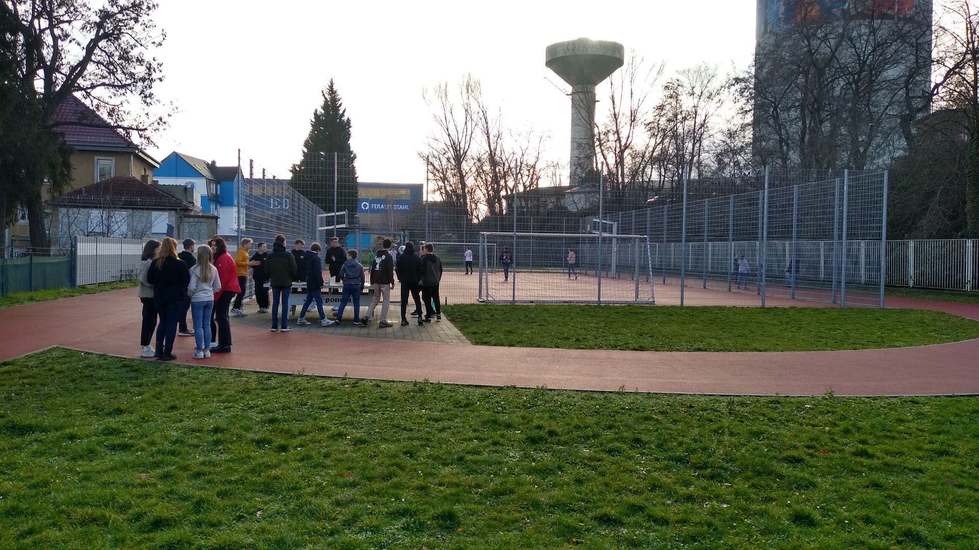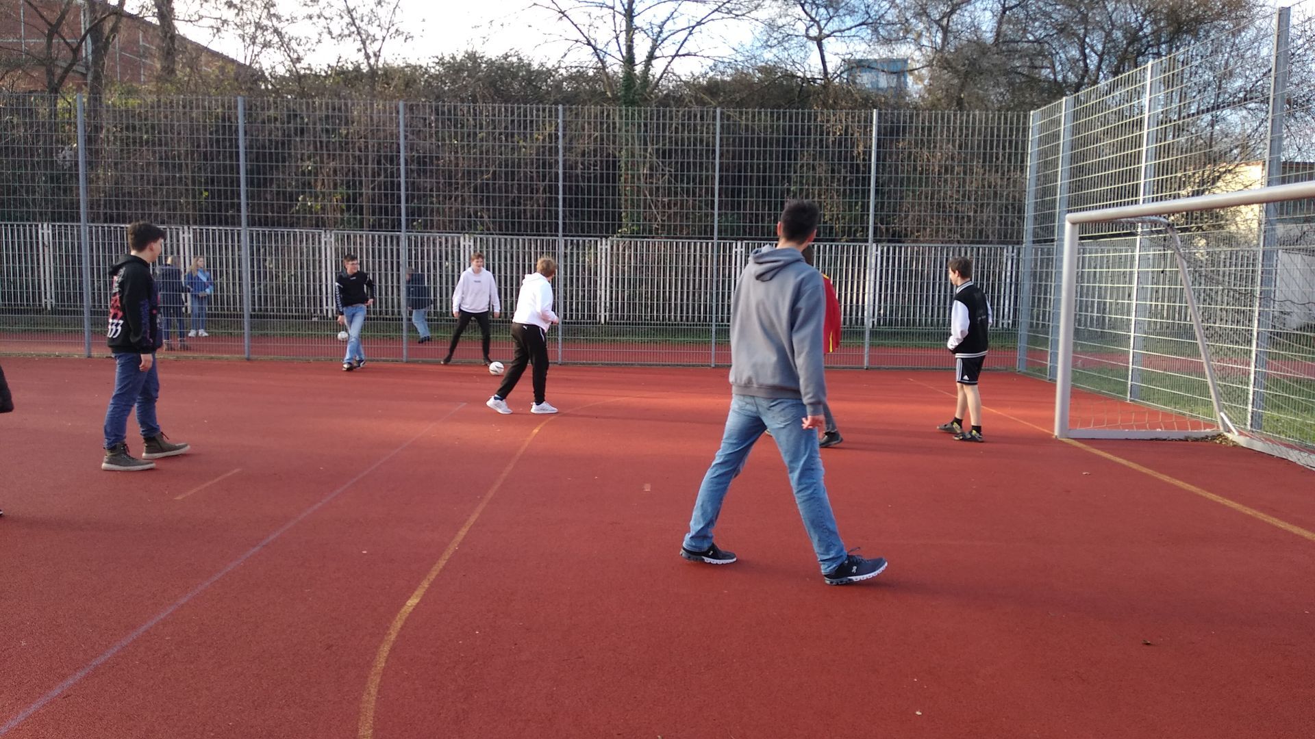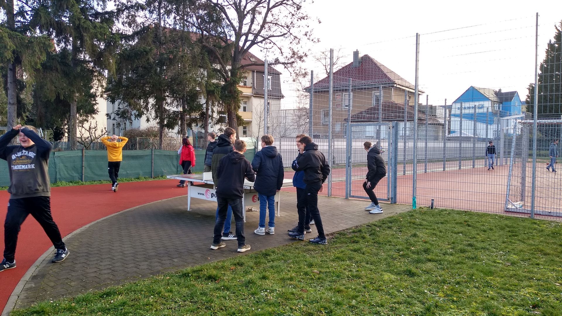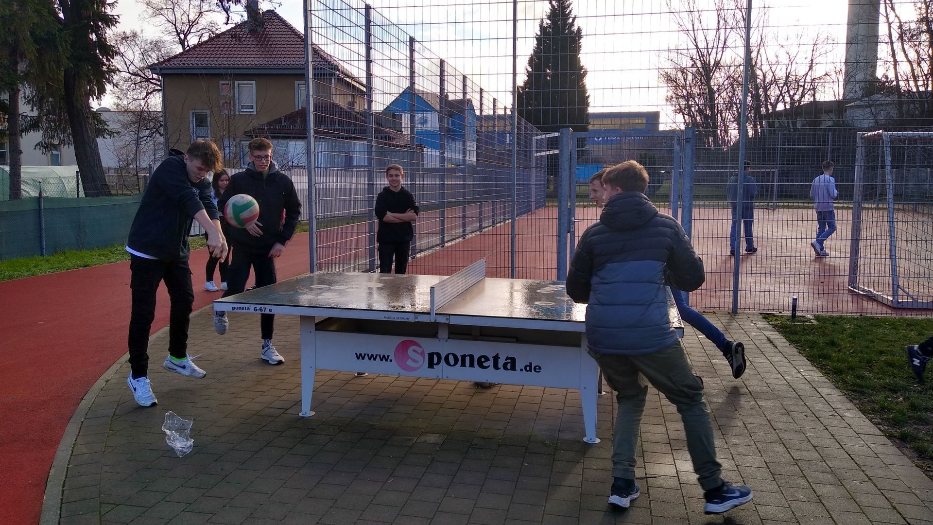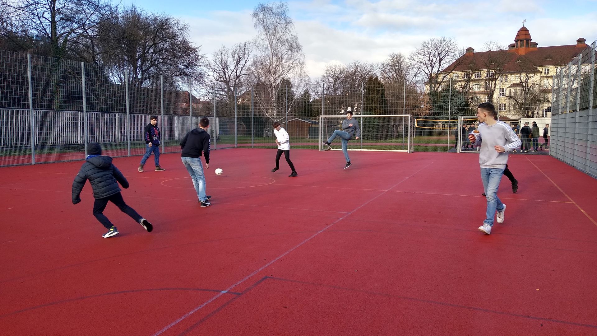 Die Aktive (Mittags-)Pause gibt es an unserer Schule seit dem Ende des Schuljahres 2021/22. Manch einer könnte denken, dass die Aktive Pause nur in den warmen Sommermonaten stattfindet. Und obwohl sich bei Temperaturen knapp über den Gefrierpunkt weniger Schüler als üblich nach draußen auf den Sportplatz wagen, so ist die Aktive Pause auch im Januar gut besucht. Die Jungs aus der 8. Klasse spielen in den letzten Wochen gerne eine Mischung aus Volleyball und Tischtennis. Weitere Schüler aus der fünften bis zehnten Klasse nutzen das Fußballfeld um sich sportlich zu betätigen. Ein paar Impression vom 10. Januar 2023 sind unten zu sehen.