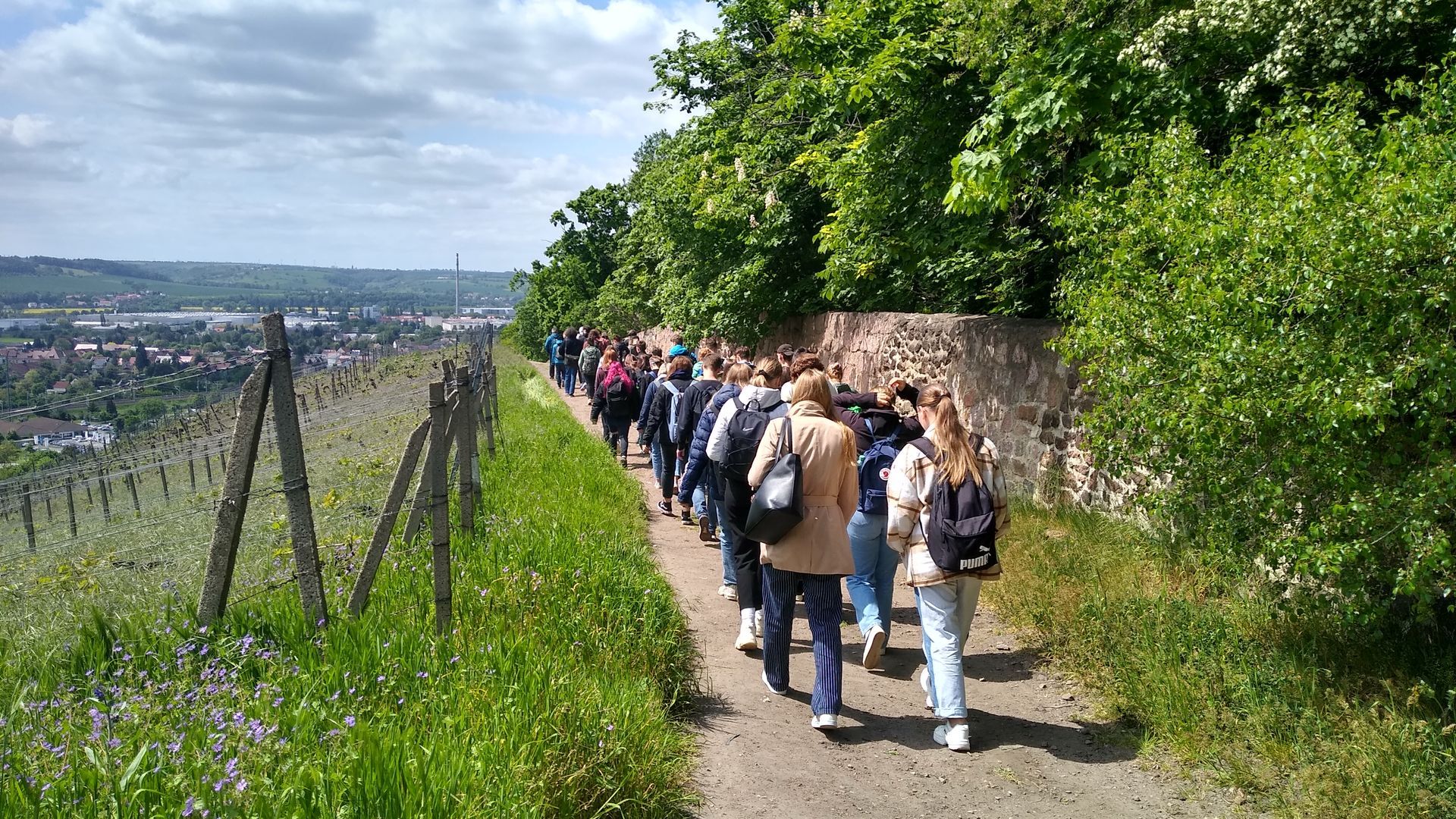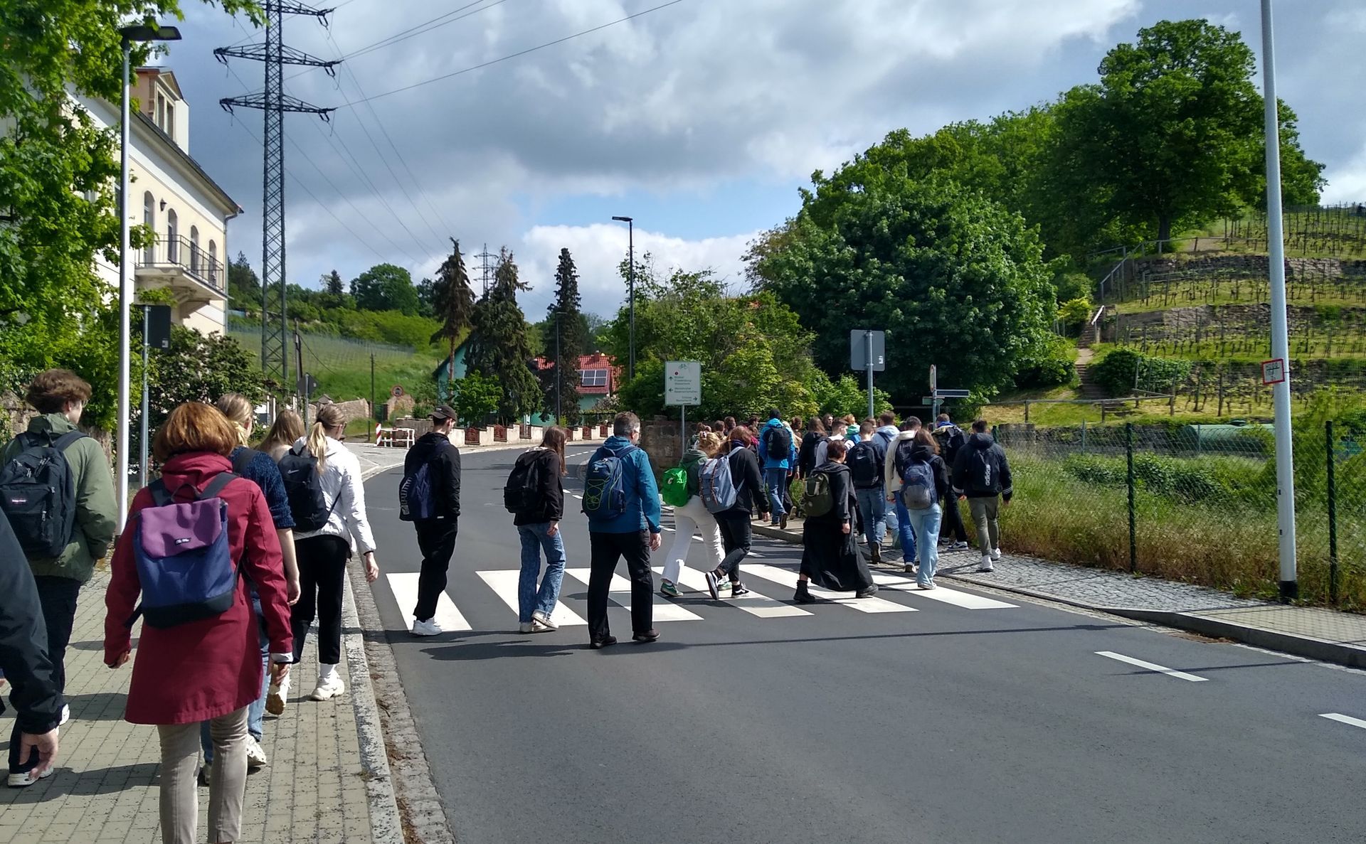 Am 17.05.2023 besuchten die Klassen 10a und 10bs nach zwei missglückten Anläufen die Sternwarte in Radebeul. Nach den ersten beiden Unterrichtsstunden machten wir uns mit zwei Physiklehrern, Frau Dr. Förster und Herr Hache, und unseren jeweiligen Klassenlehrern, Frau Haufe und Frau Breidenbach, auf den Weg zum Riesaer Bahnhof. Nach kurzer Wartezeit ging die Fahrt zum Coswiger Bahnhof los, von wo wir mit der S-Bahn nach Radebeul fuhren. Gemeinsam traten wir den Anstieg zur Sternwarte an.