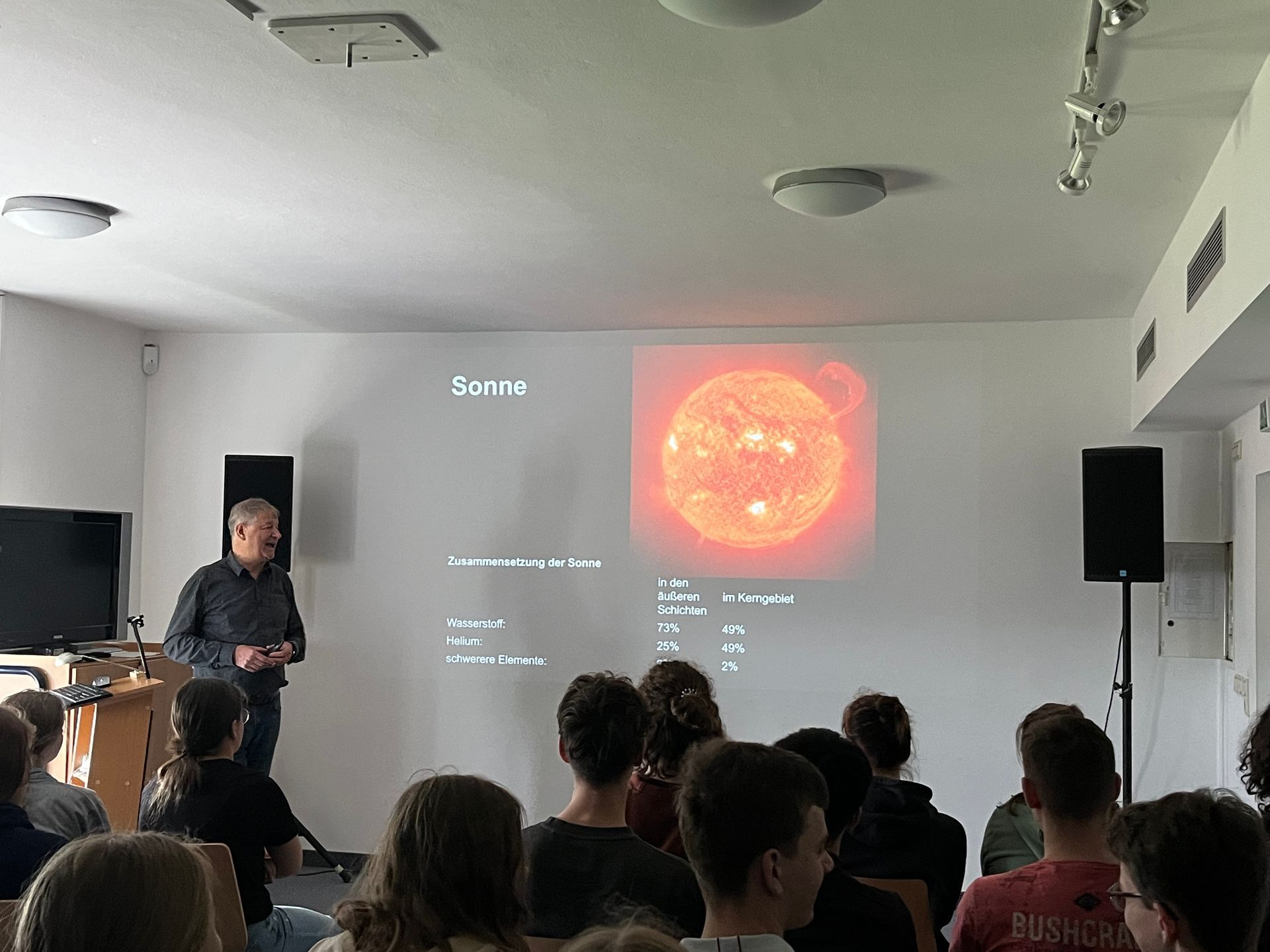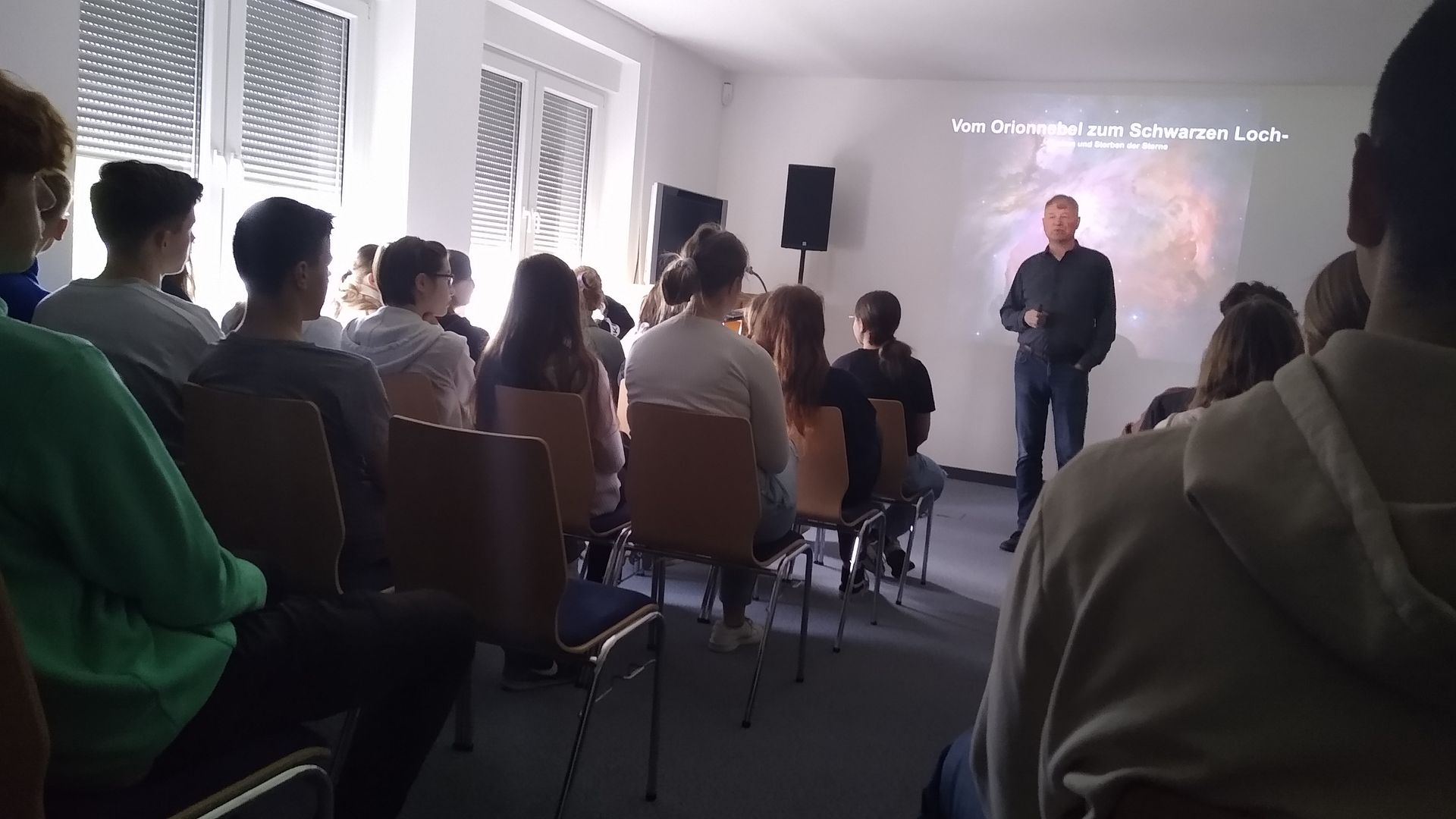 Der Weg war steil, aber wir sind alle wohlbehalten, wenn auch außer Atem, oben angekommen. Nach einer kurzen Verschnaufpause wurden wir schon in den Seminarraum geführt, wo wir der nächsten Stunde einem sehr interessanten und beeindruckenden Vortrag lauschen durften. Das Thema war die Entstehung sowie der „Tod“ der Sterne in unserem Universum. Als uns gezeigt wurde wie klein die Sonne, für uns ein riesiger Stern, im Vergleich zu anderen Sternen ist, wurde uns bewusst, wie klein wir doch sind. In diesem Zusammenhang zeigte man uns bekannte und vergleichbare Sterne, wie zum Beispiel den Beteigeuze, einem der uns größten bekannten Sterne. Außerdem erfuhren wir, wie man Sterne in Spektralklassen einteilt und wie diese zu lesen sind. Nachdem der Vortrag endete, durften wir in das Planetarium gehen. Die Bilder, die uns dort gezeigt wurden, waren atemberaubend, da ein solcher Anblick des Sternenhimmels, durch die immer mehr zunehmende Lichtverschmutzung, nahezu unmöglich ist. Zusätzlich dazu erklärte man uns, wie man Sterne mithilfe von Koordinaten lokalisieren kann und welchen Einfluss diese Methode für die Wissenschaft hatte und bis heute hat.