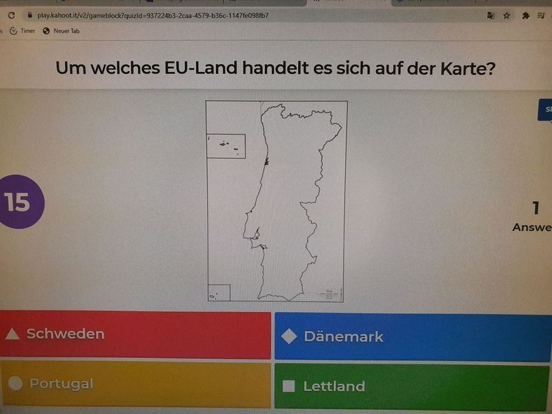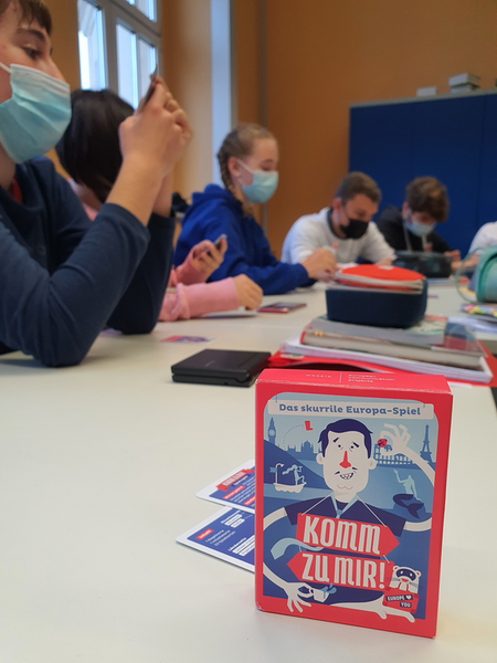 Bisweilen ging es im Unterricht auch spielerisch zu, um sich europäischer Geschichte zu nähern und zu ergründen, was uns in Europa verbindet und was uns voneinander unterscheidet. Mithilfe von Kahoot-Quizzen und zwei Brett- bzw. Partyspielen in Deutscher und Englischer Sprache konnten die Schüler ihr Wissen zu Europa unter Beweis stellen. In „Komm zu mir! Das skurrile Europa-Spiel“ gilt es, die anderen Teilnehmer von den kuriosen Vorteilen verschiedener Länder zu überzeugen. Die schrägen Seiten Europas werden auch im Brettspiel „Wo bitte ist Umtata?“ beleuchtet. „Umtata“ ist jeweils der Platzhalter für Länder, nach deren Errungenschaften, Eigenheiten oder Skurrilitäten gefragt wird.