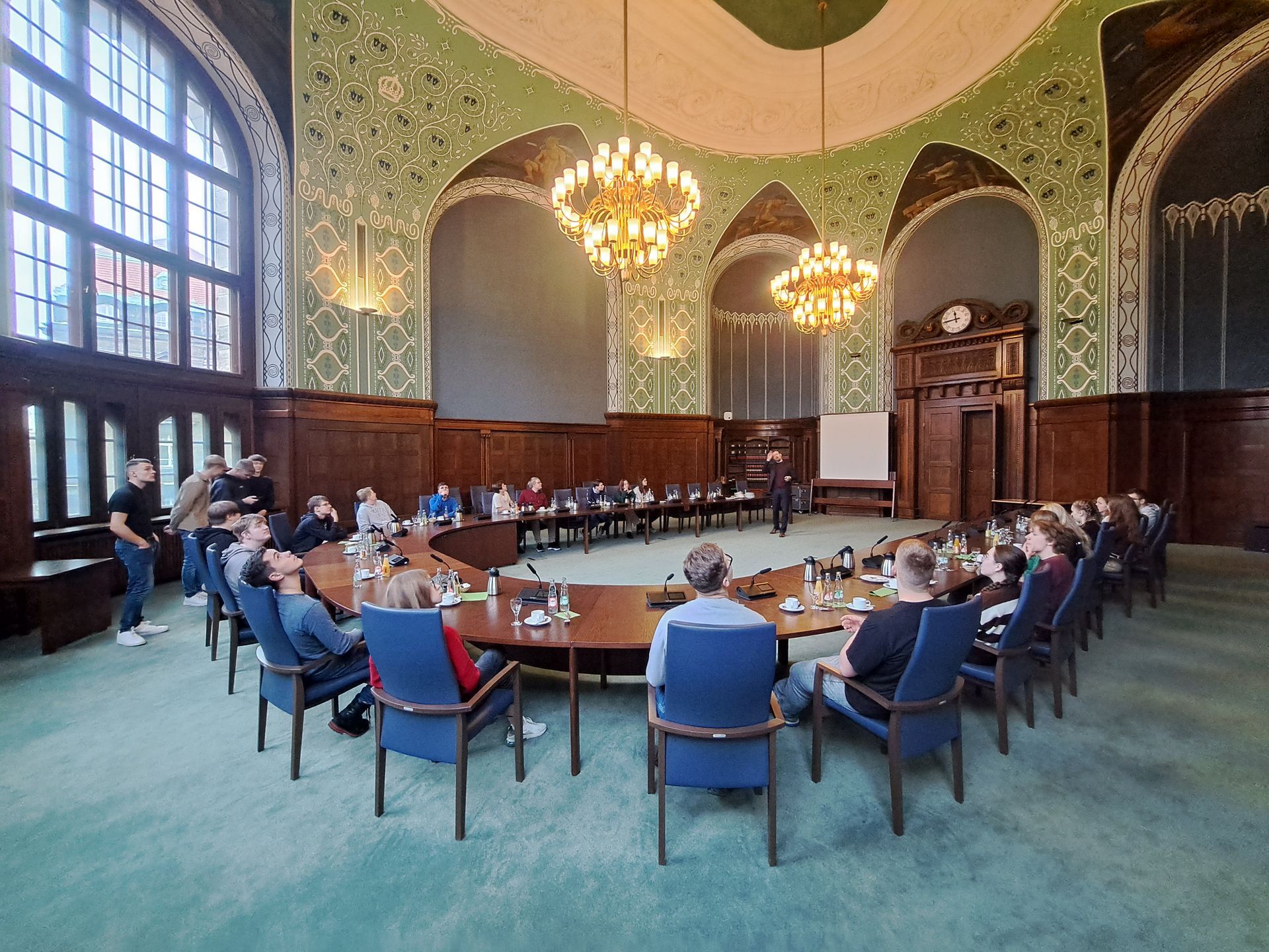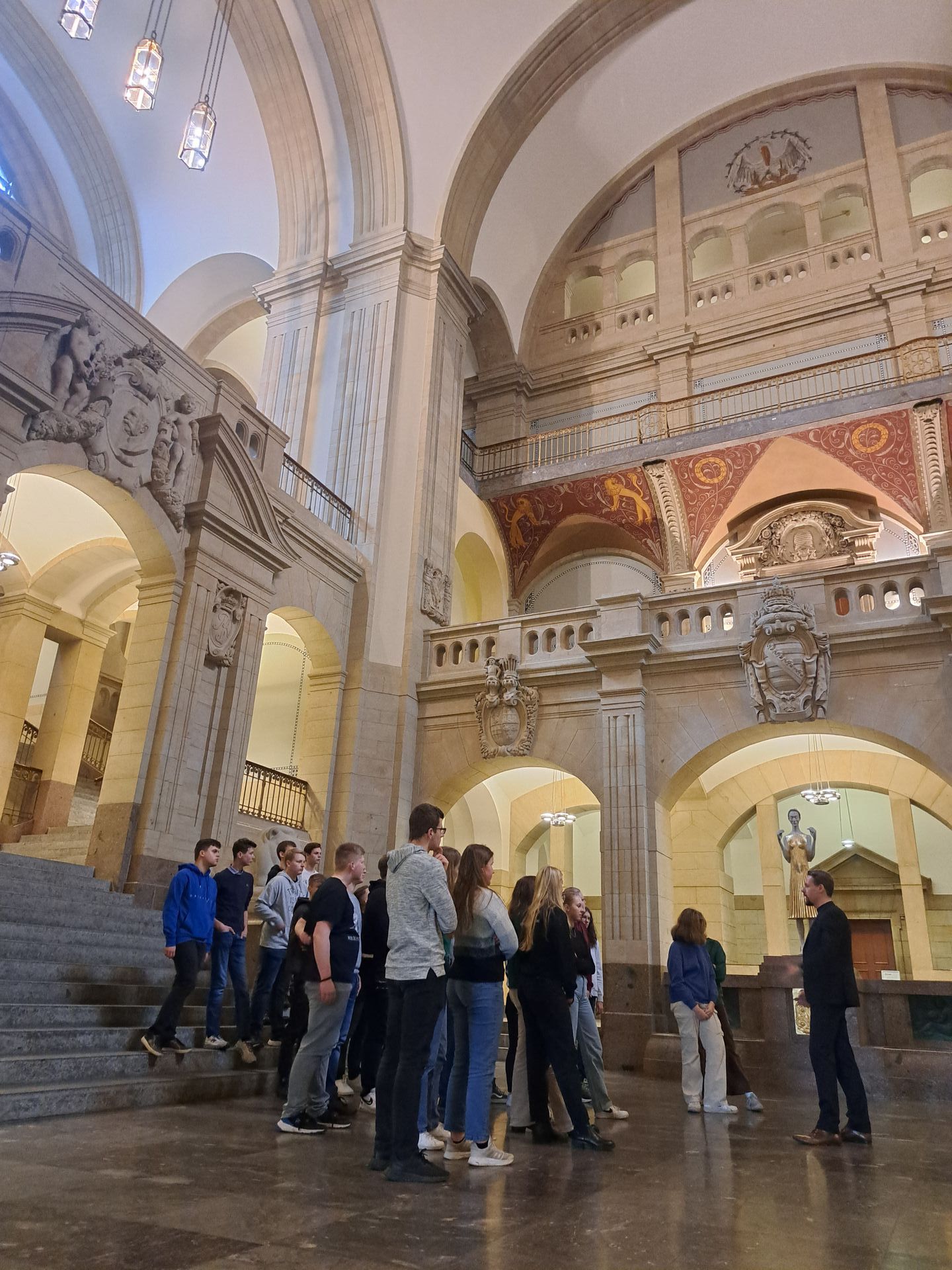 Neben Medienzentrum, Sitzungssaal und dem abhörsicheren Kabinettsraum fanden wir insbesondere die imposante Eingangshalle, geziert von zahlreichen geschichtsträchtigen Ornamenten, beeindruckend.