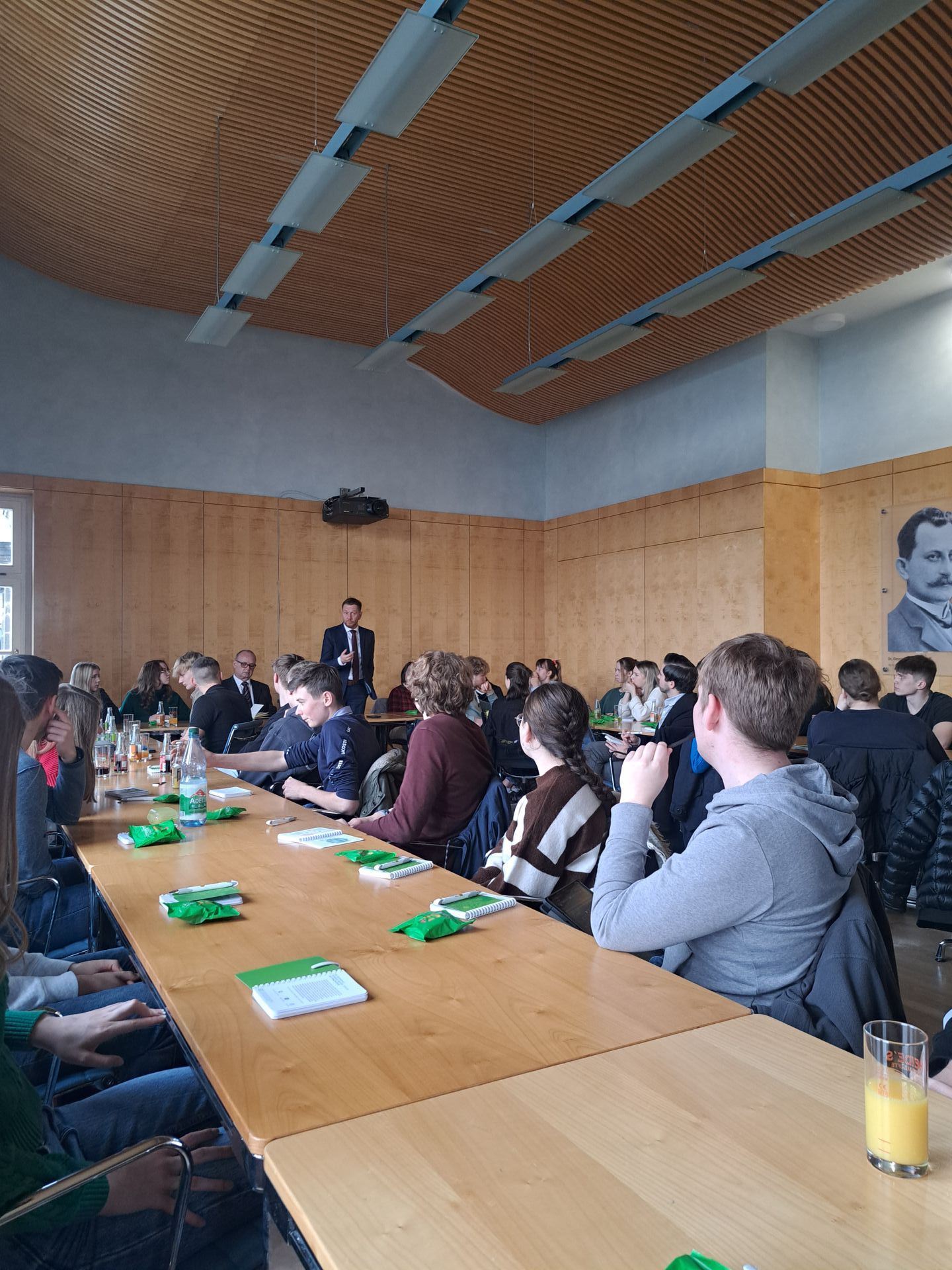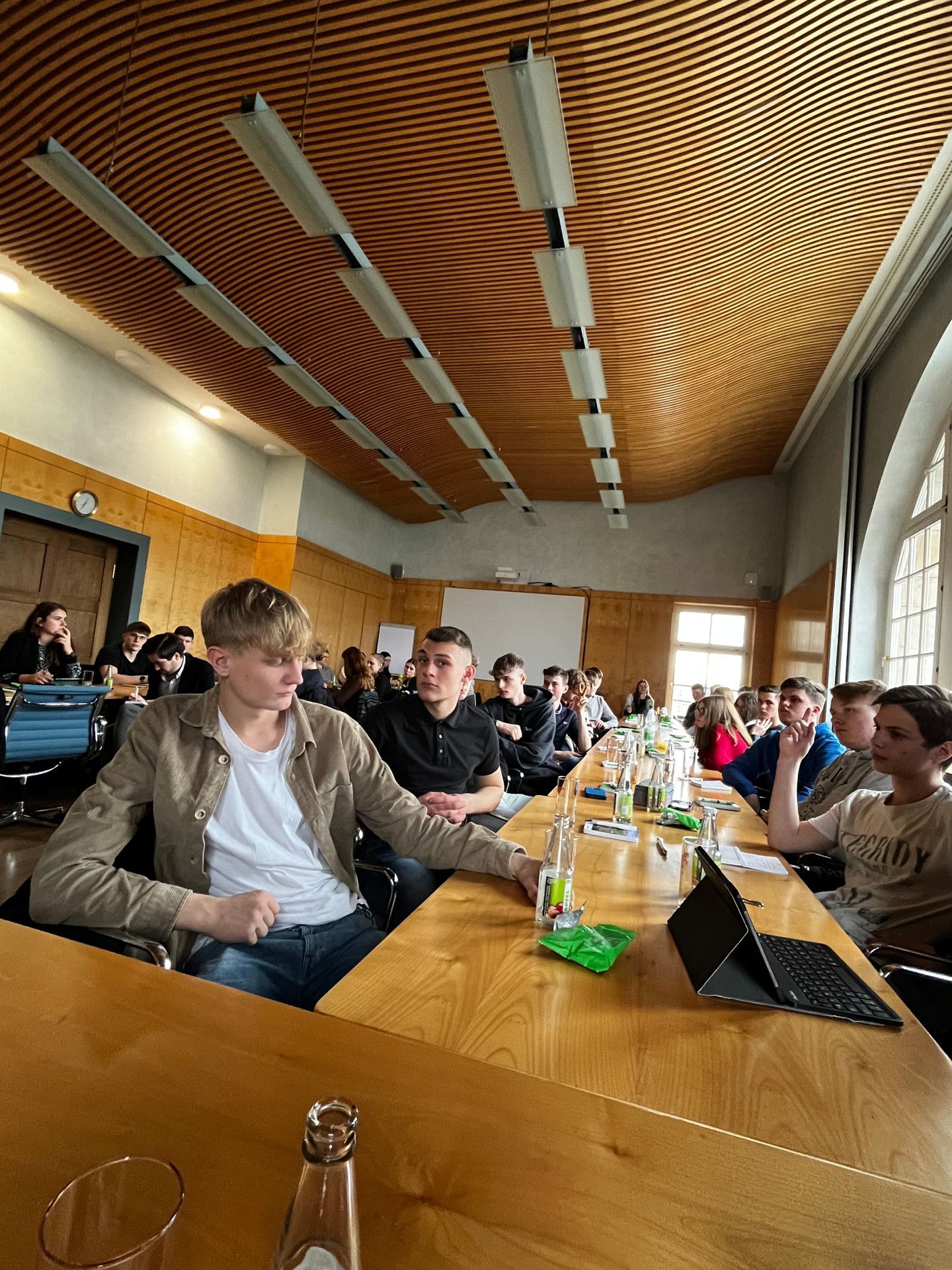 Während sich der Ministerpräsident noch vom Botschafter der Kirgisischen Republik verabschiedete, riefen wir uns noch einmal die im GRW-Unterricht vorbereiteten Fragen in Erinnerung. Unsere anfängliche Aufregung verflog schnell, als der MP das Gespräch locker eröffnete und uns Riesaern Raum für Fragen, Anregungen und Beschwerden eröffnete.