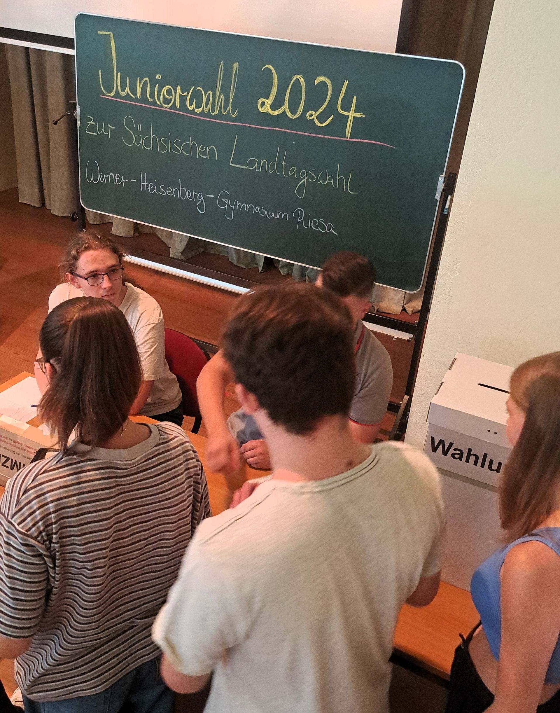 Zum wiederholten Male fand am WHG die Juniorwahl statt, bei der die Schüler ab der 8. Klasse – parallel zu den Sächsischen Landtagswahlen - ihre Stimmen abgaben. Auf originalgetreuen Stimmzetteln mit Erst- und Zweitstimme simulierten sie die Wahl für den Wahlkreis Meißen 1 aus der Sicht der nächsten Wählergeneration.