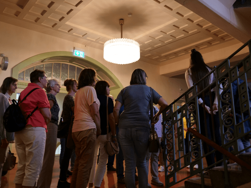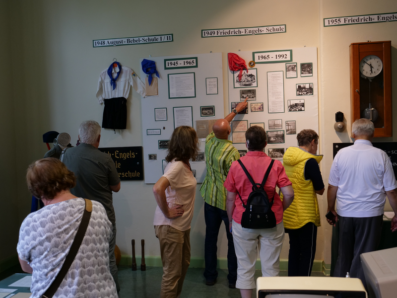 Abschließend ging es ins Schulmuseum, das mit viel Interesse aufgenommen wurde. Die alten Chroniken wurden durchgeblättert und der ein oder andere entdeckte Fotos von sich, Geschwistern oder Freunden. Nach einer Verabschiedung zog die Gruppe weiter. Neben der Besichtigung der Kirchstraße in Riesa sollte der Tag mit einem gemeinschaftlichen Abendessen im „Wettiner Hof“ ausklingen.