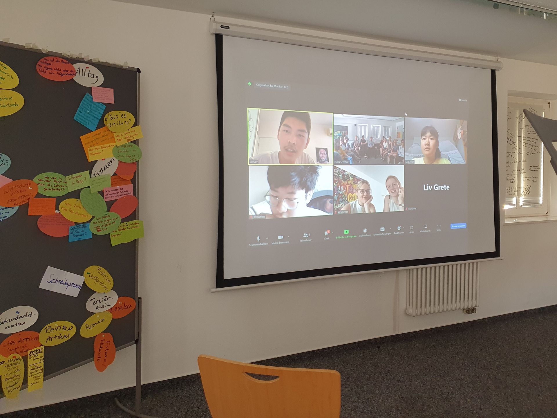 Ansonsten hatten wir in unserer Freizeit die Möglichkeit, an von den Kursleitern oder den Teilnehmern selbst organisierten Angeboten teilzunehmen, wie z.B. Debattieren, Chorsingen oder Fremdsprachen lernen. Auch bekamen wir die Gelegenheit, uns bei Onlinemeetings mit chinesischen Schülern in Shanghai direkt auszutauschen. Interessant waren auch der Workshop zum Thema „antiasiatischer Rassismus“ oder das Onlinemeeting mit dem deutschen Rapper „Scor“, der sich in den sozialen Medien mit seinem chinesischen Rap einen Namen gemacht hat.