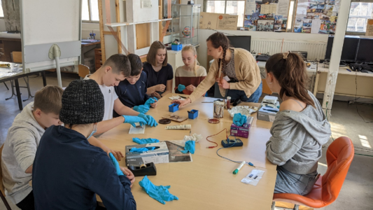 Die 11. Klassen konnten in diesem Jahr einen Einblick in das Studium an der TU Dresden gewinnen. Nach einer Campusführung wurden den Schülerinnen und Schülern in einer Informationsveranstaltung Fragen rund um das Studium und das Studentenleben beantwortet. Danach konnten sie gruppenweise in den Alltag eines MINT-Studenten eintauchen: