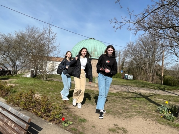 Für die Klassenstufe 9 stand am MINT-Tag eine Exkursion nach Radebeul in das Planetarium auf dem Plan. Mit dem Zug nach Zitzschewig, durch die Weinberge von Wackerbarth zur Volkssternwarte „Adolph Diesterweg“. Ein Frühstück in toller Lage mit anschließendem Vortrag über unsere Planeten und die Bedeutung von Satelliten im Planetarium.