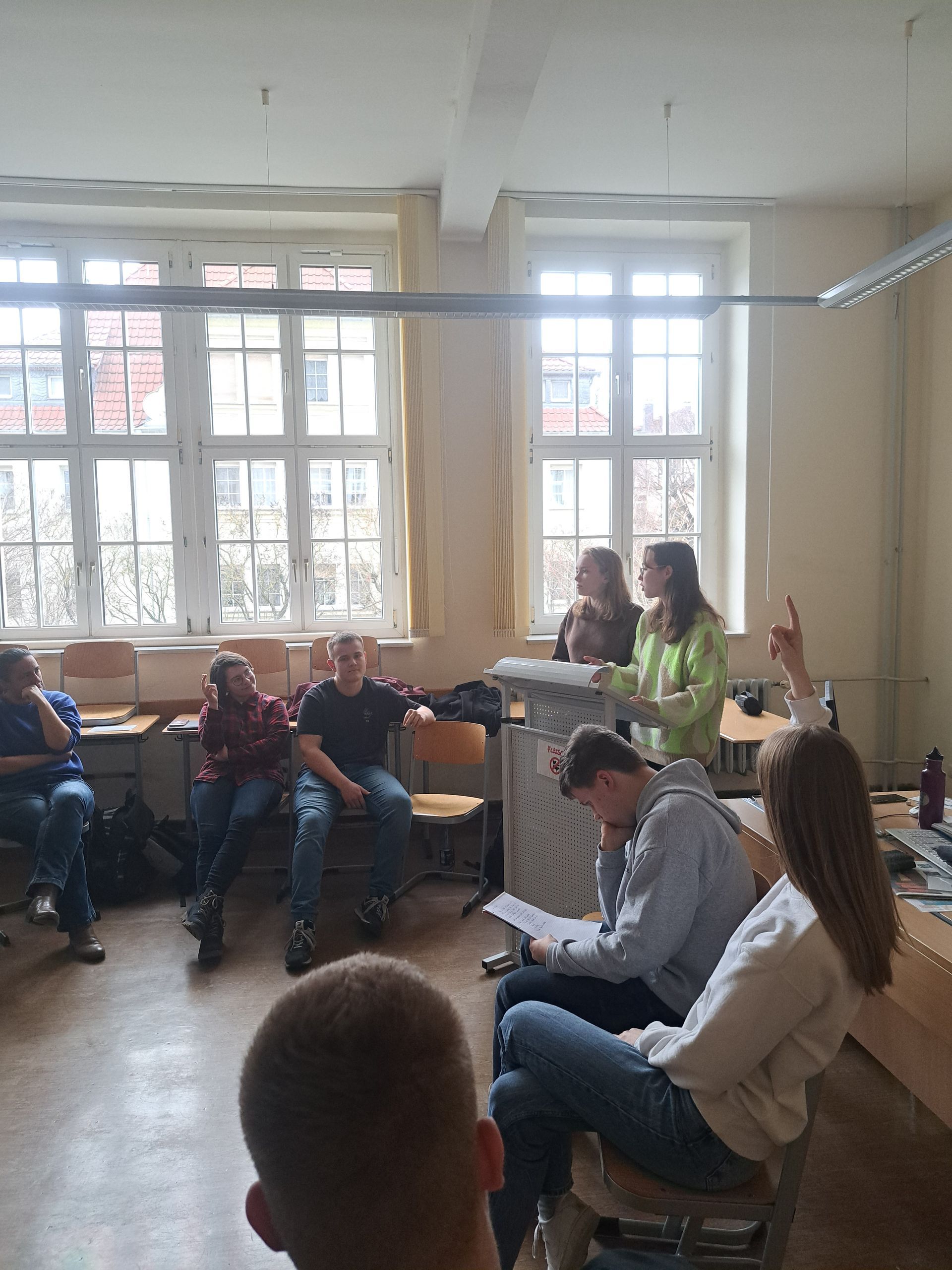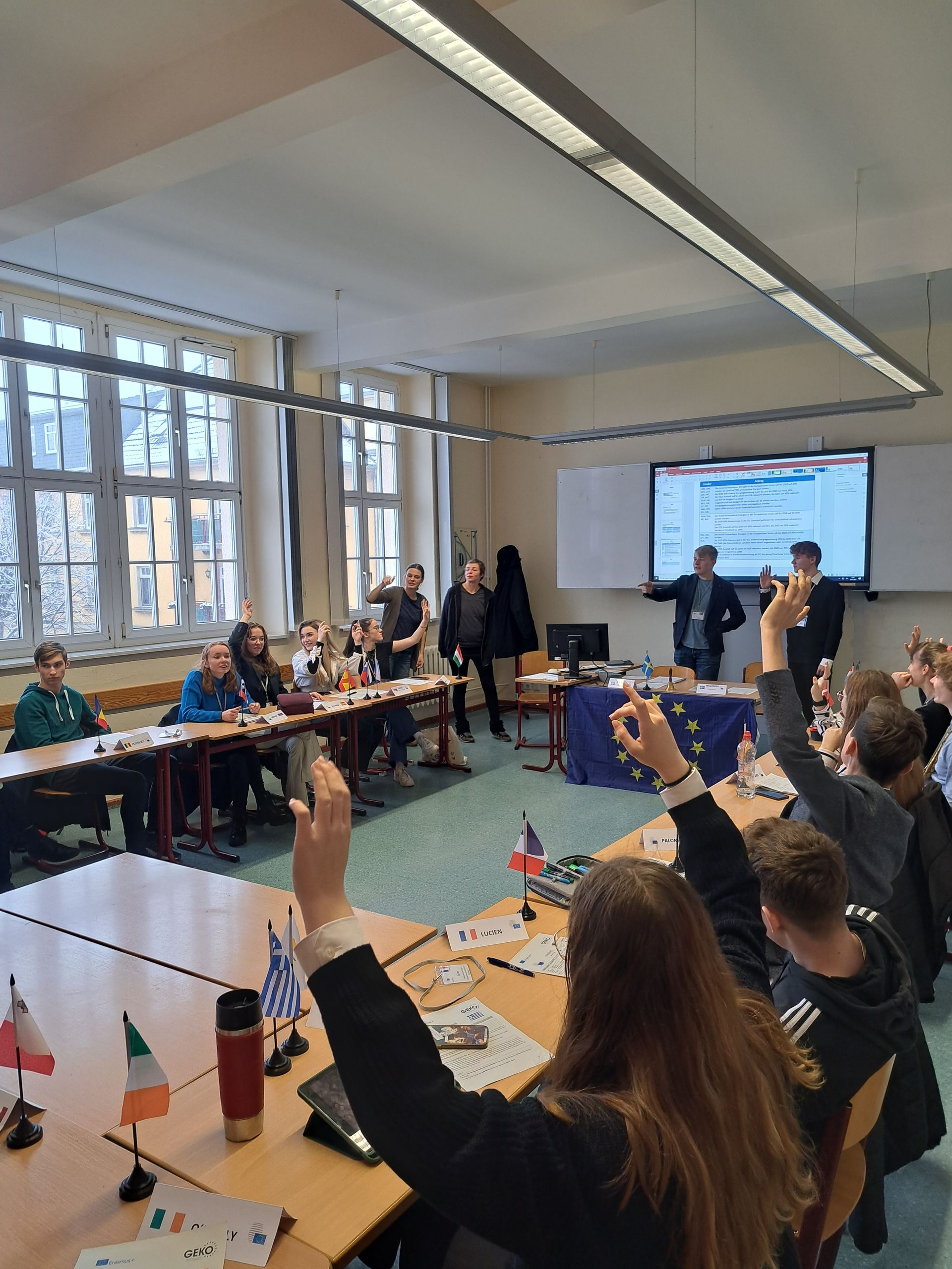 „Europäische Perspektiven zu Demokratie und Klimaschutz“, zu diesem Thema war die Jahrgangsstufe 11 zur Teilnahme am fächerverbindenden Projekt von Geografie und GRW im Januar eingeladen. Durchgeführt wurde das Vorhaben am 17. und 18. Januar 2023 am Werner-Heisenberg-Gymnasium Riesa von Mitarbeitern der Gesellschaft für Europa- und Kommunalpolitik e.V. (GEKO) aus Berlin.
