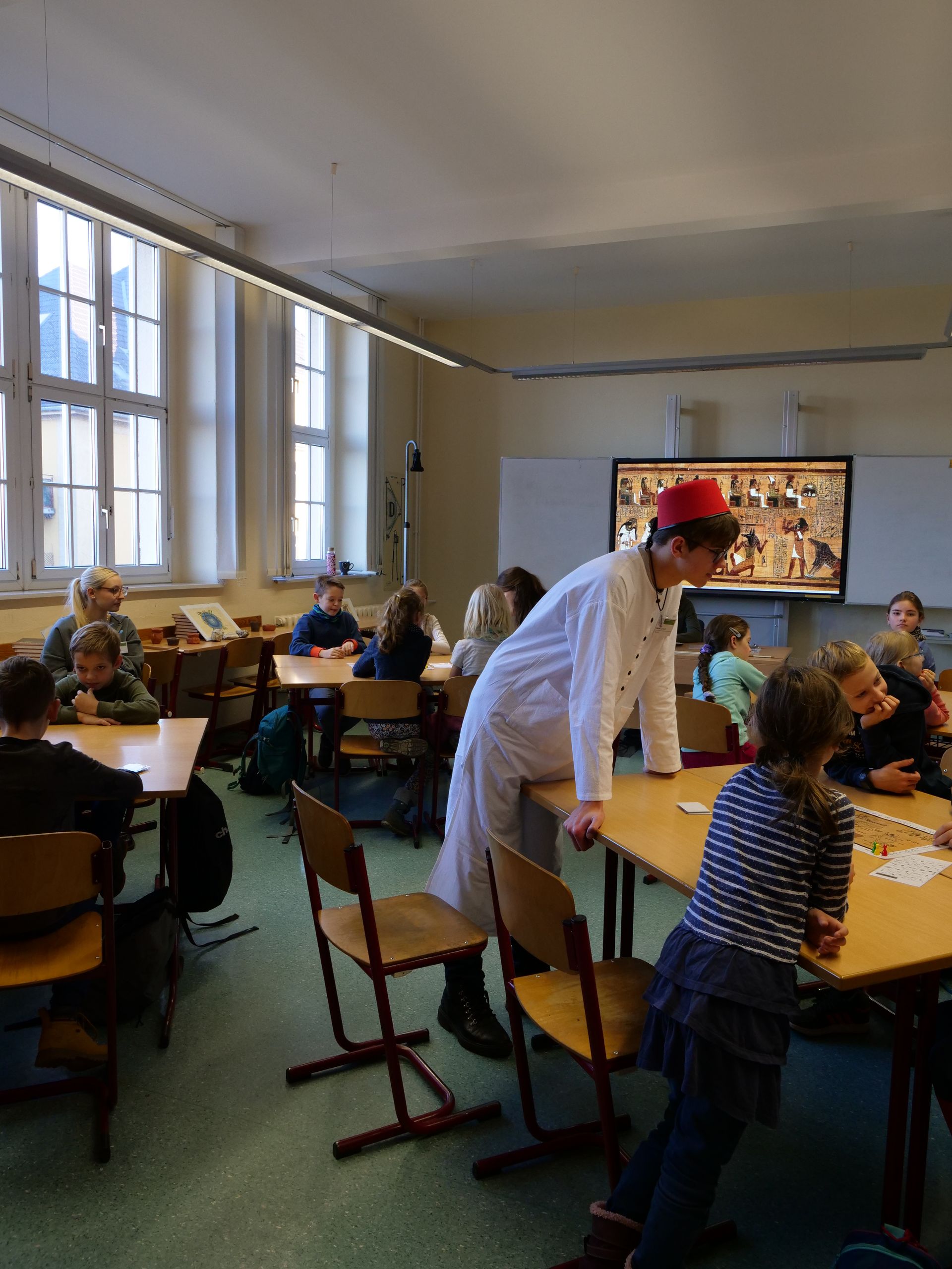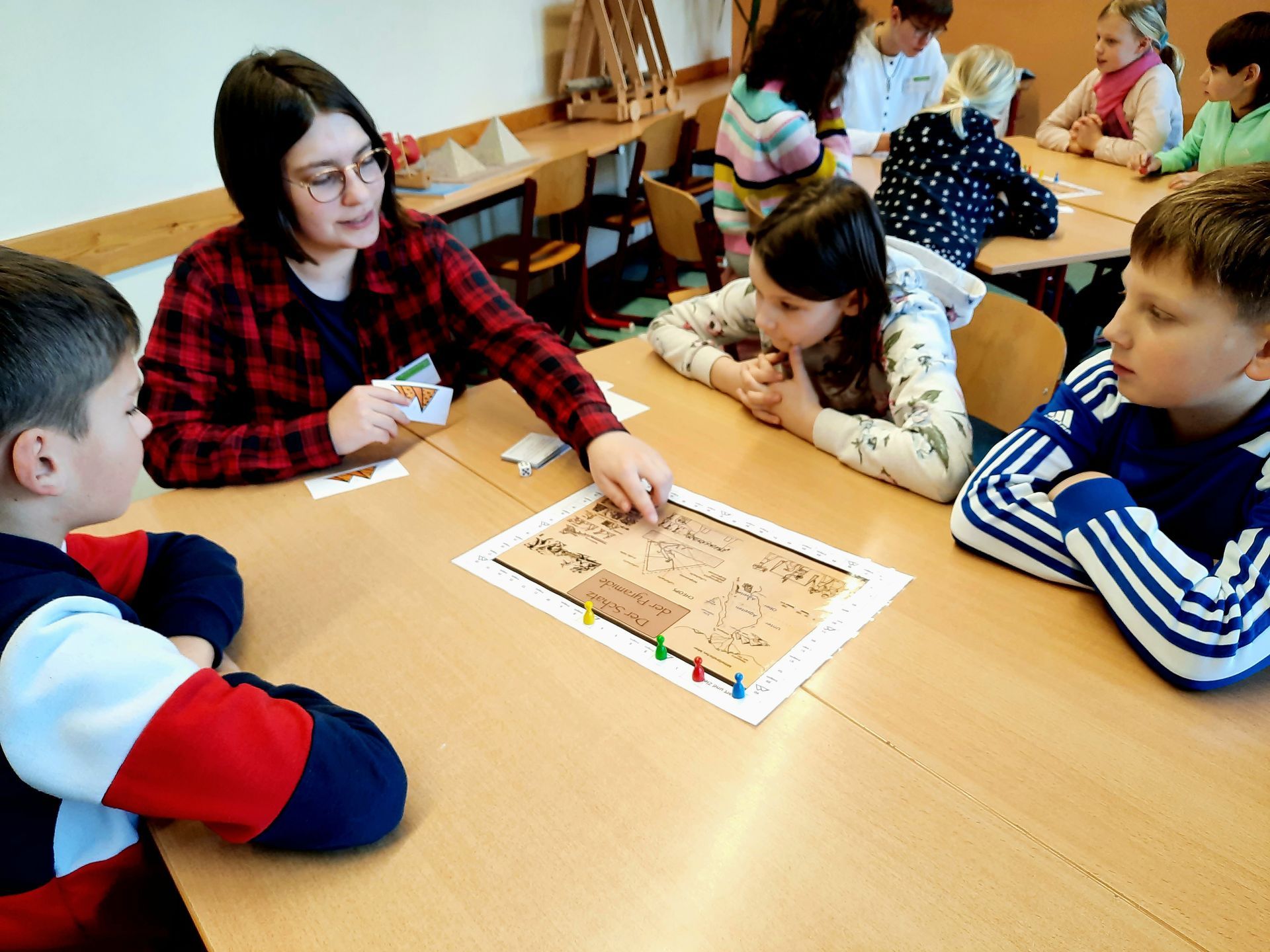 Die Kinder unternahmen eine abenteuerliche Schatzsuche. In verschiedenen Fächern stellten sie erfolgreich ihr Können unter Beweis. So wurden sie in sportlichen Wettkämpfen, beim Theaterspielen und beim Musizieren aktiv. Sie nahmen Früchte unter die Lupe und tauchten in die physikalischen Prozesse der Unterwasserwelt ein. Ihre Schatzsuche führte sie sogar bis ins alte Ägypten. Zum Schluss schafften es alle Schüler, die Schatzkarte des Werner Heisenberg vollständig zusammenzufügen und damit den lange verschollenen WHG-Schatz aufzuspüren.