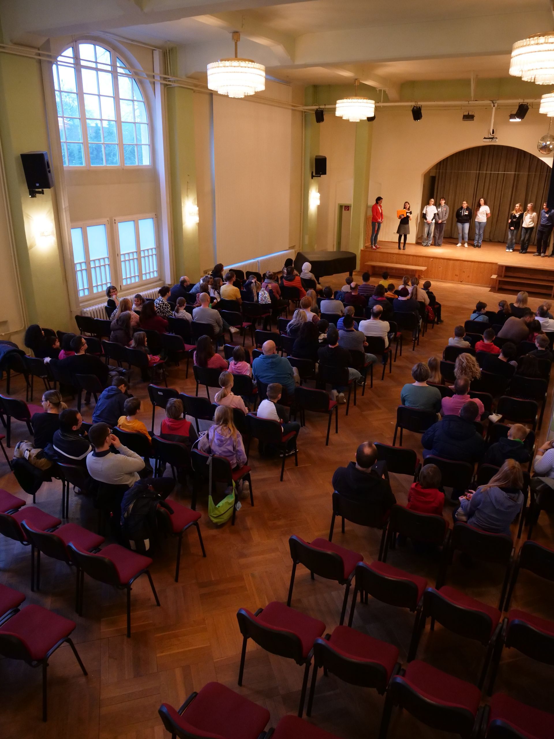 Um den Eltern die Wartezeit zu versüßen, fand parallel zur Schülerveranstaltung ein Elterncafé statt. In ungezwungener Atmosphäre konnten sie sich über unser Schulleben und die außerschulischen Angebote informieren, das Schulgebäude bei einer kleinen Führung erkunden sowie mit der Schulleitung, dem Kollegium und Vertretern des Eltern- und Schülerrates ins Gespräch kommen.