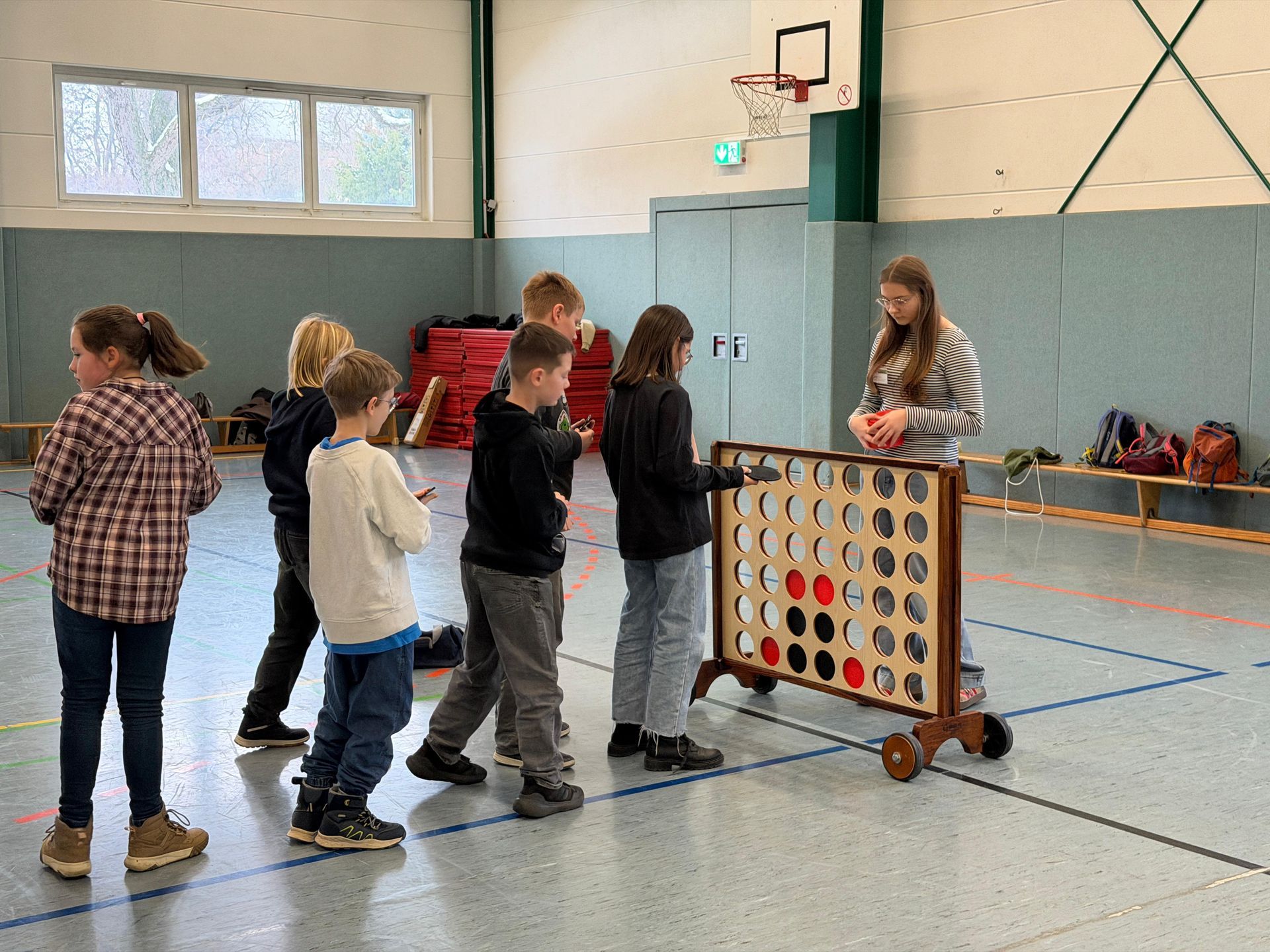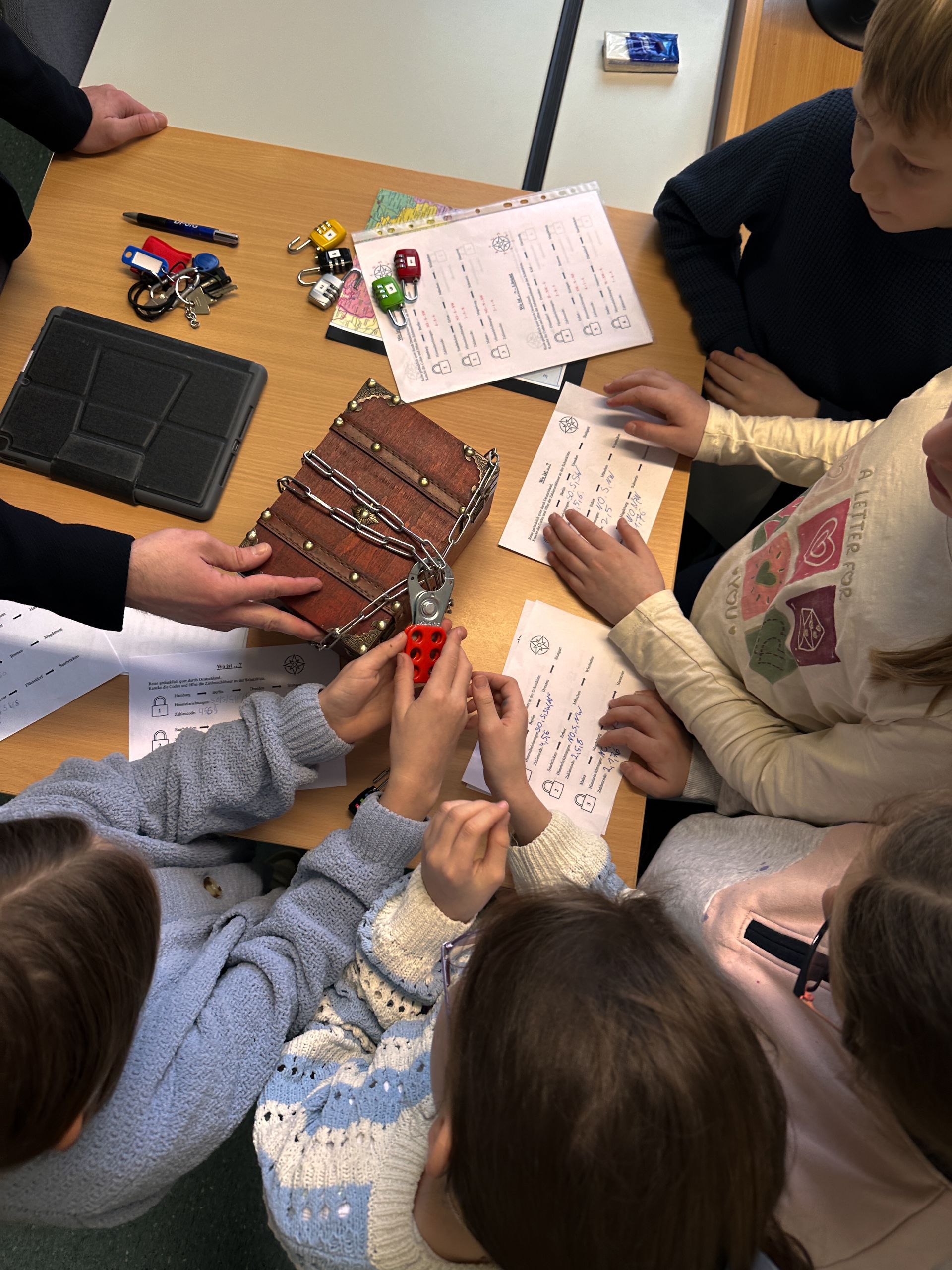 Um die neuen Fächer und die Lehrkräfte kennenzulernen, lösten die Kinder in Schnupperstunden spannende Rätsel und knackten Zahlenschlösser. So stellten sie ihr künstlerisches Talent unter Beweis, retteten mit englischen Rätseln Pinguine aus dem Zoo und erweiterten in Geographie ihre topographischen Kenntnisse. Nach einer kulinarischen Stärkung nahmen sie zudem die Farbe von Tee unter die Lupe und tauchten in die physikalischen Prozesse des Segelfluges ein. Zum Schluss ergatterten die Gruppen bei Teamspielen mit unserer Sozialarbeiterin den Schlüssel zur Abschlussveranstaltung, bei der eine Urkunde und ein kleiner Knobel-Preis auf sie wartete.