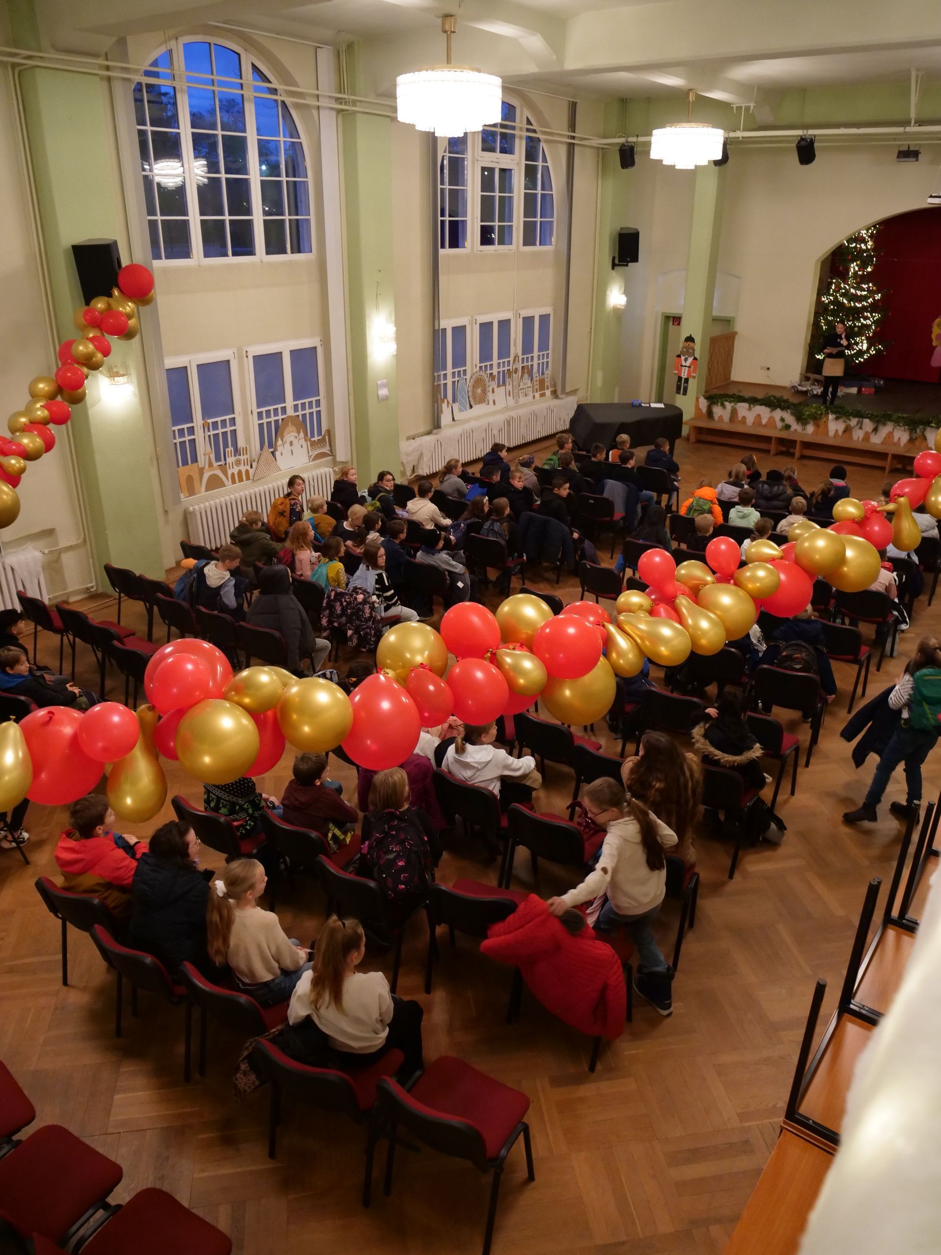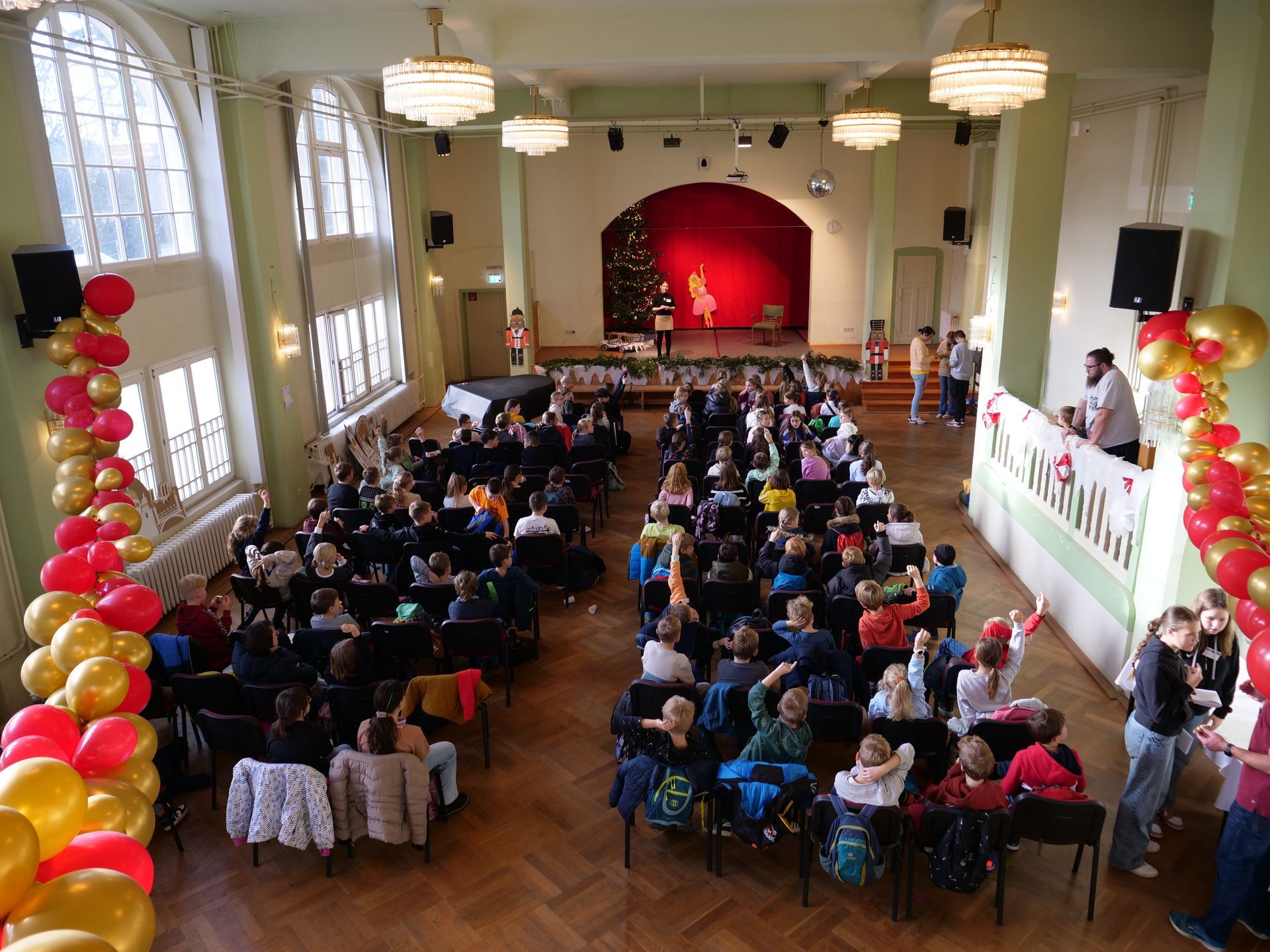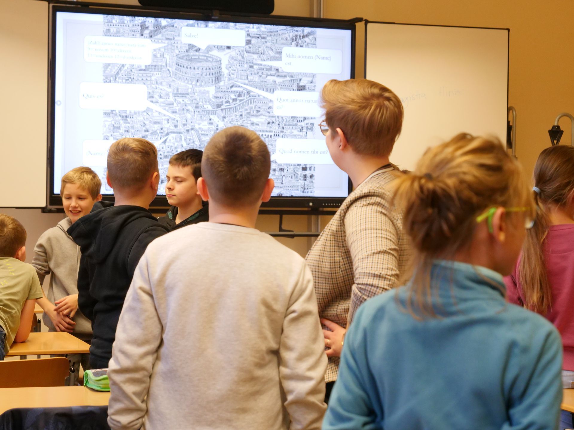 Am 3. Dezember 2024 standen unsere Türen interessierten Schülerinnen und Schülern der 4. Klasse offen: Mit viel Begeisterung und Motivation machte die Meute von 100 Kindern eine englische Schnitzeljagd durch das Schulhaus und schnupperte in neue Fächer, wie Geographie, Latein und Französisch hinein. Unterstützt wurden sie dabei tatkräftig von unseren Fünftklässlern sowie vielen engagierten Helfern aus der Schülerschaft. Zur Stärkung gab es ein Buffet mit allerlei Leckereien. Eine Teilnahmeurkunde und einen kleinen Gruß der Schülerschaft durften die Grundschüler dann mit nach Hause nehmen. Und sogar der Weihnachtsmann hat sich das Ereignis nicht entgehen lassen und den fleißigen Grundschülern ein kleines Präsent mitgebracht.