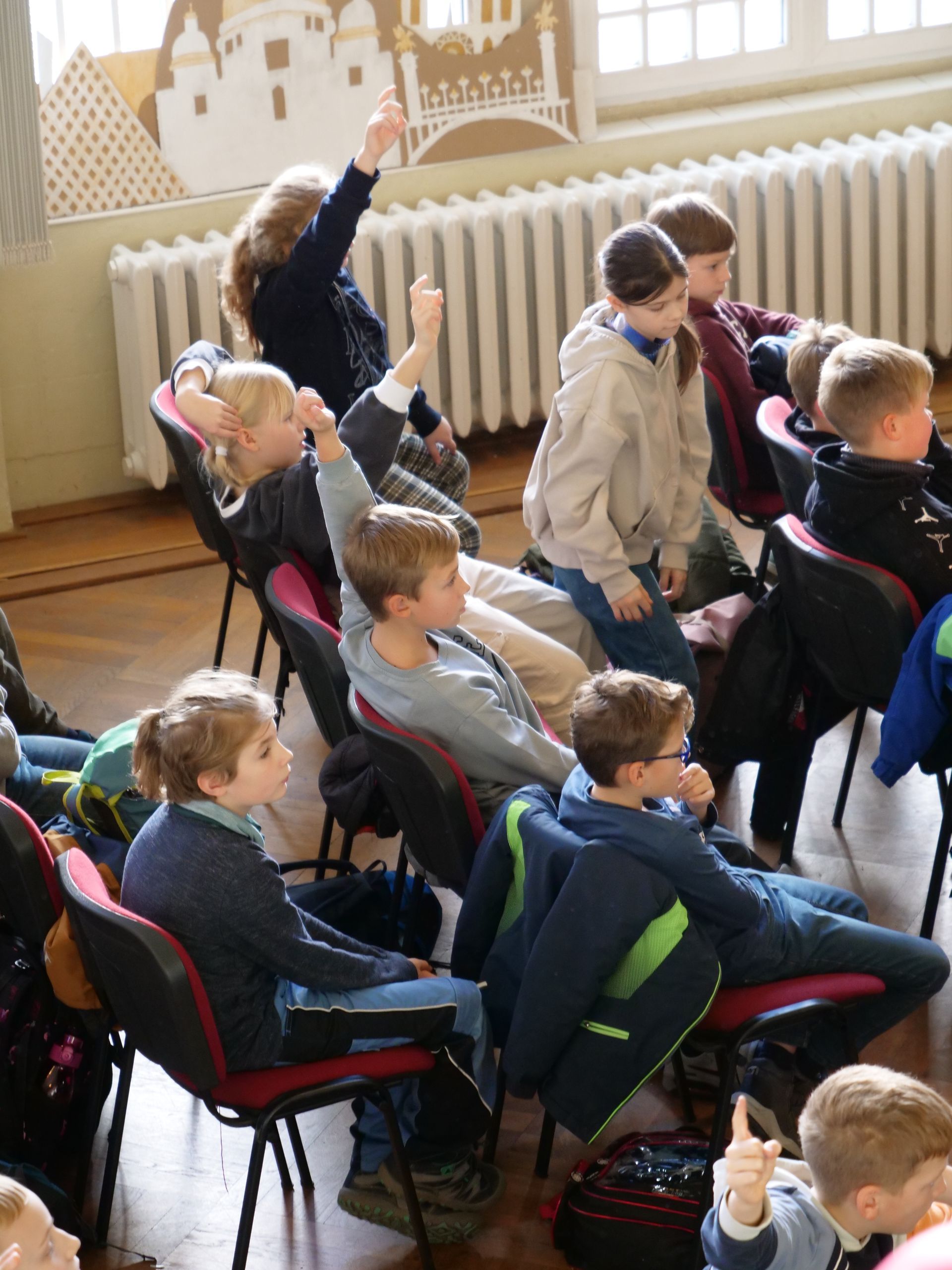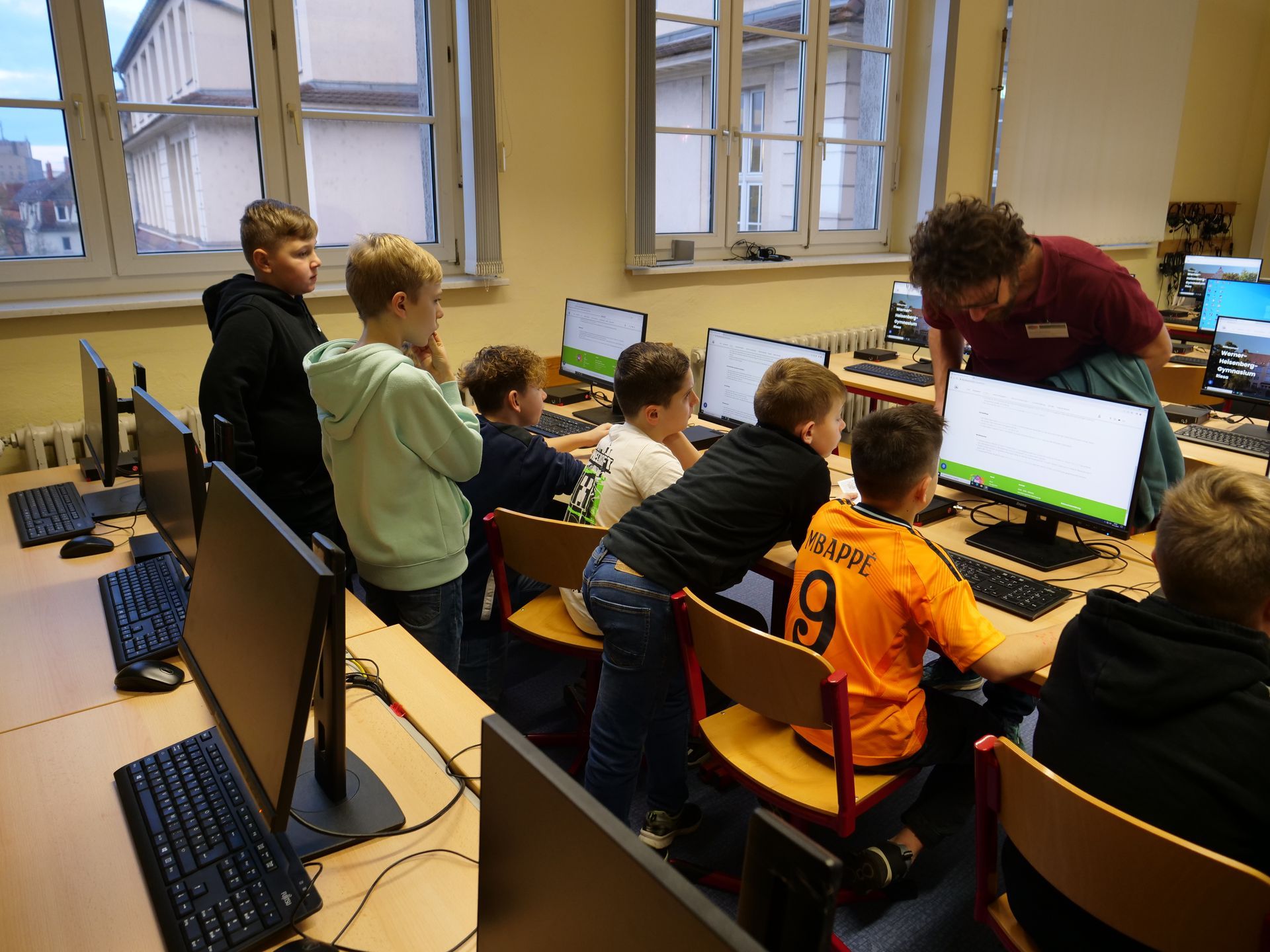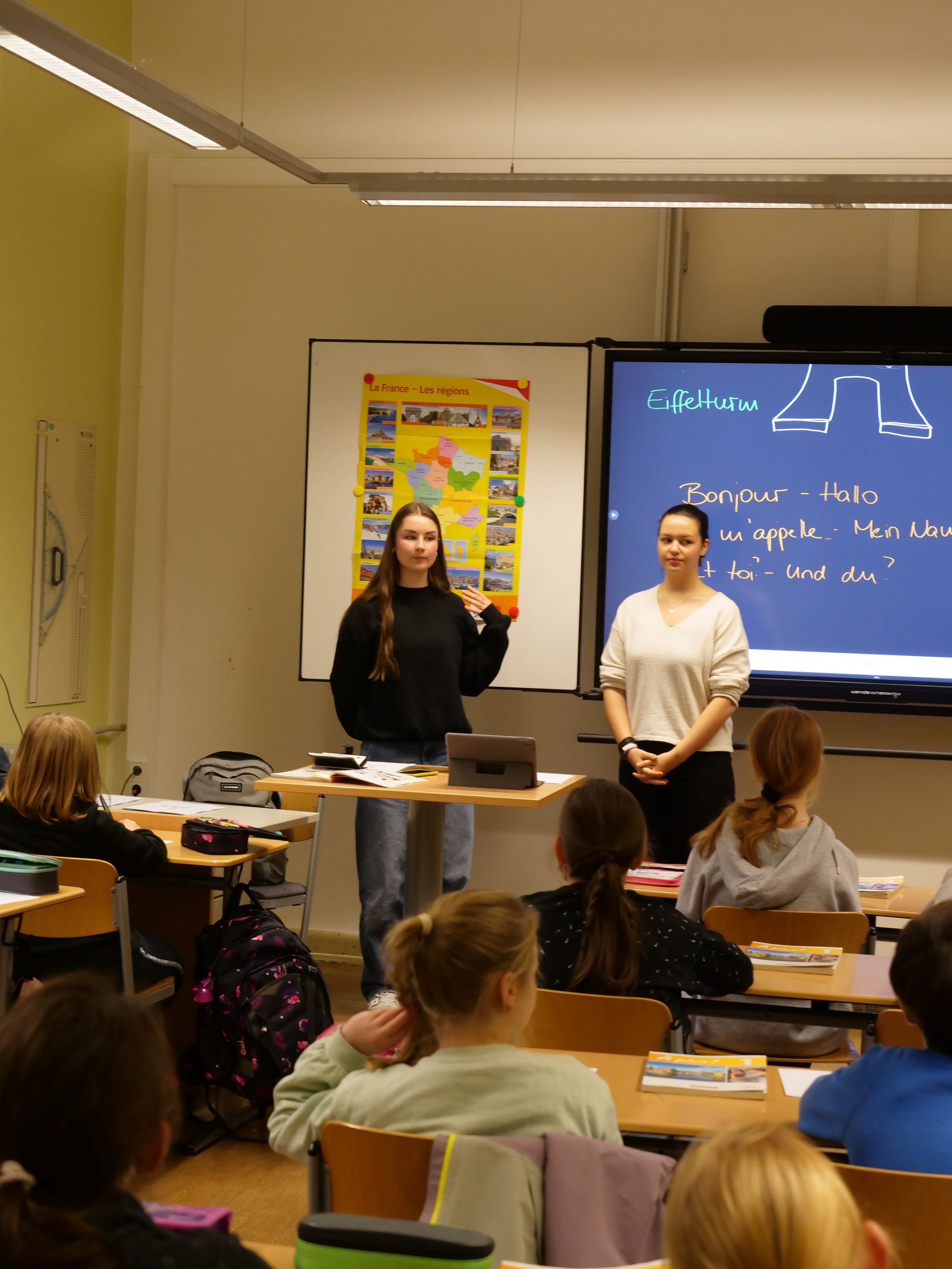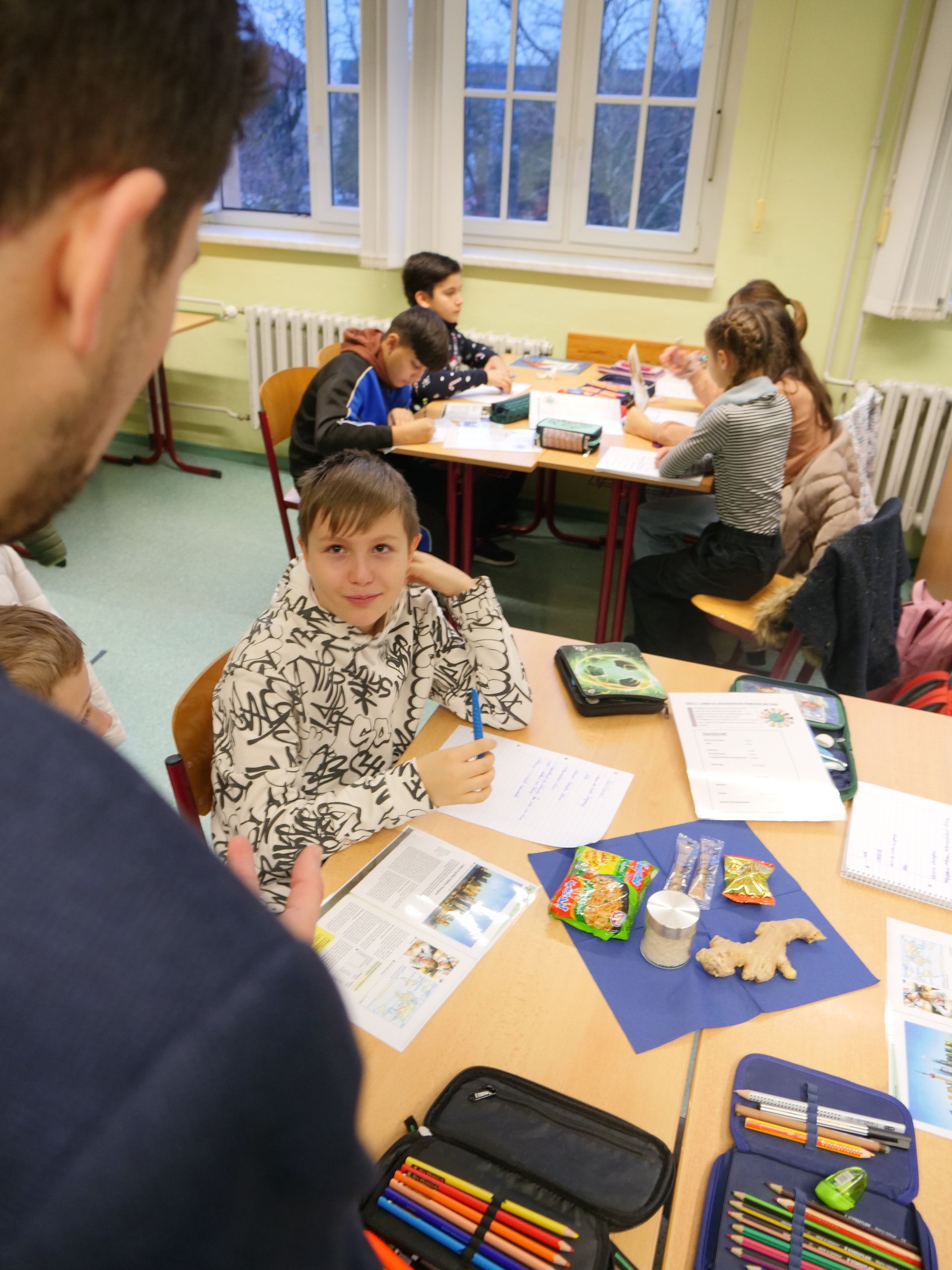 Am 3. Dezember 2024 standen unsere Türen interessierten Schülerinnen und Schülern der 4. Klasse offen: Mit viel Begeisterung und Motivation machte die Meute von 100 Kindern eine englische Schnitzeljagd durch das Schulhaus und schnupperte in neue Fächer, wie Geographie, Latein und Französisch hinein. Unterstützt wurden sie dabei tatkräftig von unseren Fünftklässlern sowie vielen engagierten Helfern aus der Schülerschaft. Zur Stärkung gab es ein Buffet mit allerlei Leckereien. Eine Teilnahmeurkunde und einen kleinen Gruß der Schülerschaft durften die Grundschüler dann mit nach Hause nehmen. Und sogar der Weihnachtsmann hat sich das Ereignis nicht entgehen lassen und den fleißigen Grundschülern ein kleines Präsent mitgebracht.