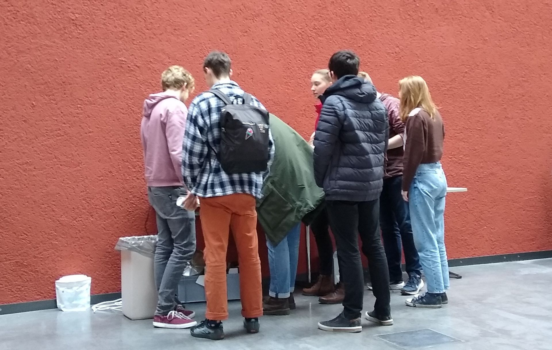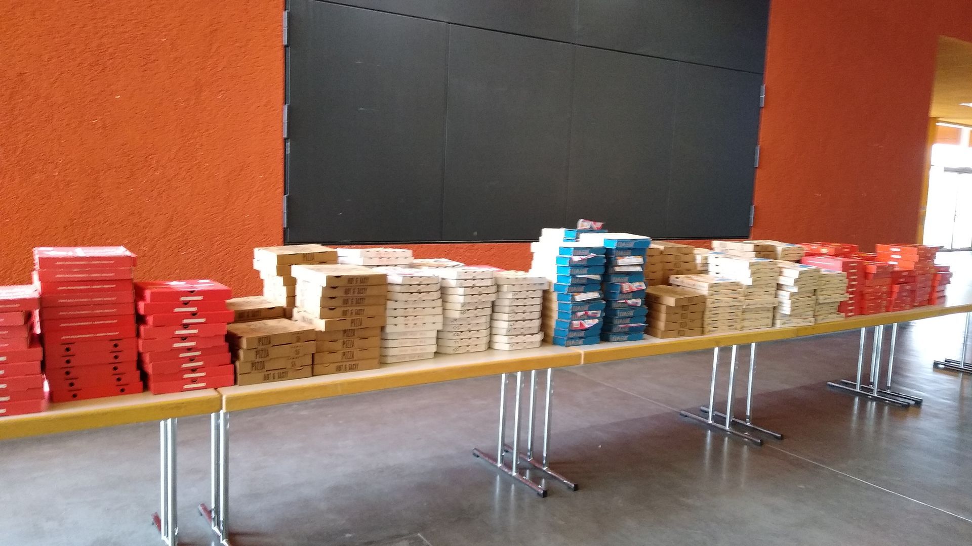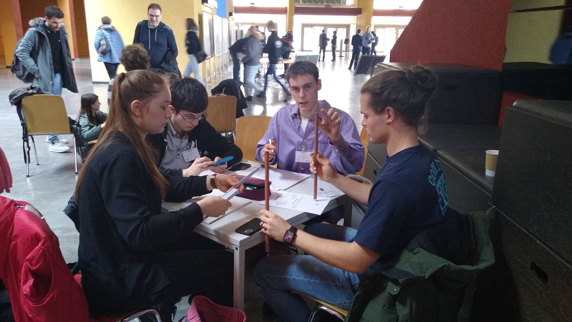 Zum Wachwerden spielten einige der Schüler während der Wartezeit bis zum Start des Wettbewerbs noch eine Runde Tischtennis oder bedienten sich beim bereitgestellten Kaffee, während andere bereits aus Sorge vor einer zu kleinen Pizza-Portion beim Mittagessen, erfolglos versuchten den anderen Teilnehmern ein Stück ihrer Pizza abzuschwatzen. Das letztere Sorgen unbegründet war, zeigte sich dann im Verlauf des Tages, als eine Heerschar an Pizzalieferanten die Pizzakartons zur Mittagspause auftürmten und keiner hungrig blieb.