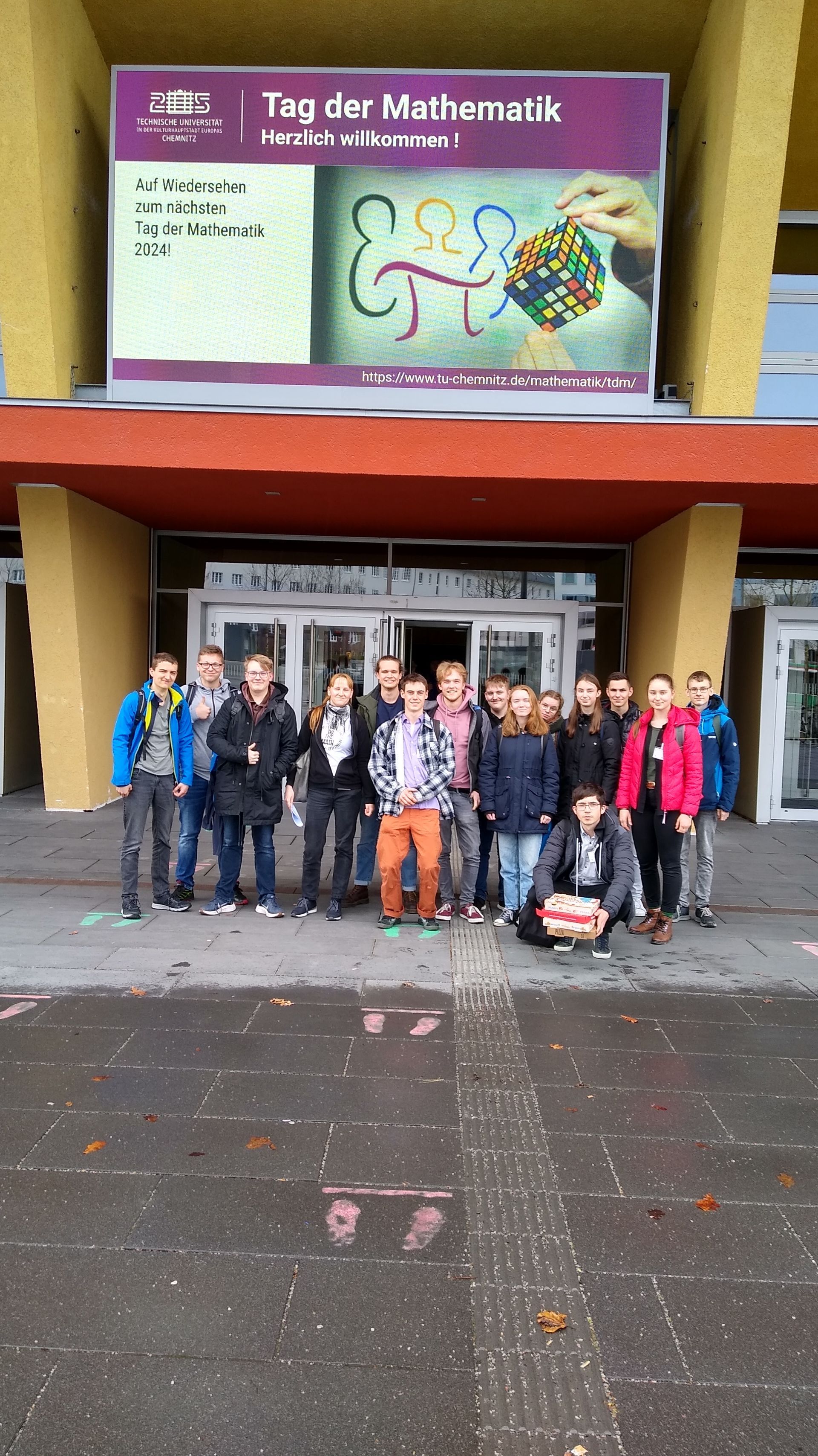 Wer denkt, dass die Teilnahme an einem Mathematikwettbewerb am 1. April wie ein schlechter Aprilscherz klingt, der täuscht sich. Insgesamt 14 Schüler des Werner-Heisenberg-Gymnasiums haben an diesem Samstag die lange Reise nach Chemnitz angetreten. Während die Schüler der Jahrgangsstufe 11 aufgrund des Schienenersatzverkehrs zwischen Mittweida und Chemnitz bereits um 6:40 Uhr am Riesaer Bahnhof gestartet sind, entschieden sich die Schüler der 12 die Reise mit dem eigenem Auto anzutreten. Wer die Schüler zum Wettbewerb begleitet hat, lässt sich mithilfe der Teamnamen wie „Försters Rechenknechte“ und „Die besten Rechenmeister von Frau Förster“ schnell erraten.