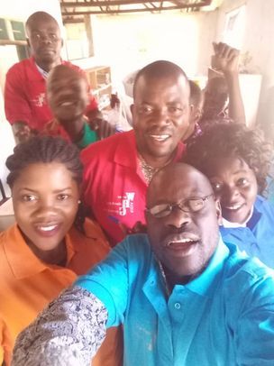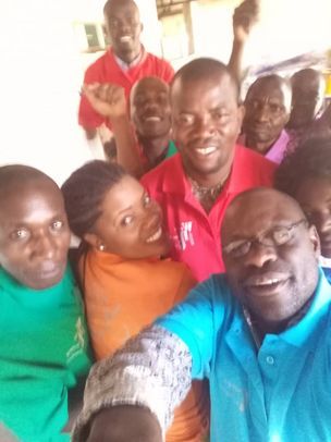 Bilder von einigen Lehrerinnen und Lehrern der Kome Secondary School. Sie tragen unser Schul-T-Shirt. Diese T-Shirts waren unter anderem in unserem Weihnachtspaket an ihre Schule enthalten. Große Freude, dass es doch noch angekommen ist, denn wir sendeten es Anfang November, vor fast fünf Monaten, ab.