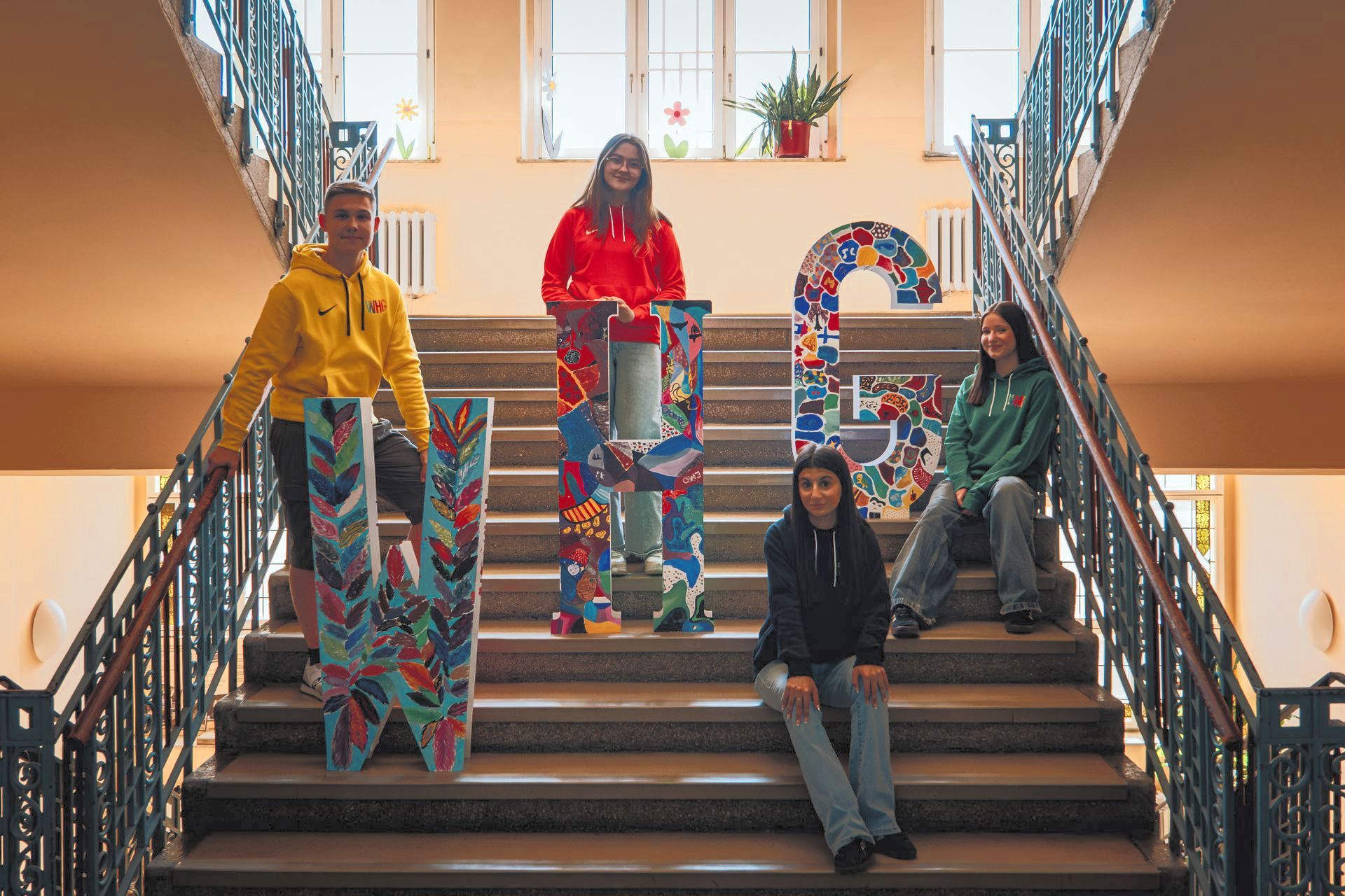 unserer Schüler, sondern auch deren Vielfalt. Wir sind eben mehr als nur die Schule mit mathematisch-naturwissenschaftlich begabten Schülern. Egal ob Künstler, Sportler, Sprachjongleur oder doch begeistert von Geschichte oder Geo. Bei uns ist das alles unter einem Dach vereint, deshalb bildet der „Farbklecks“ den Hintergrund unserer Schulsilhouette.